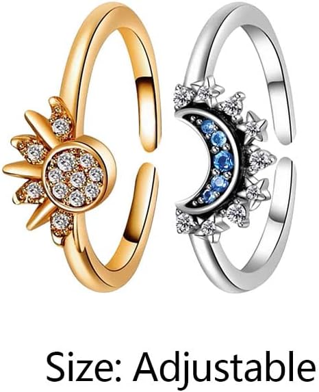 The package includes a gold sun ring and a silver moon ring, the unique design makes these matching couple rings stand out from conventional rings, the 2 pcs moon and sun matching rings can fit together perfectly which adds an extra touch of uniqueness and elegance