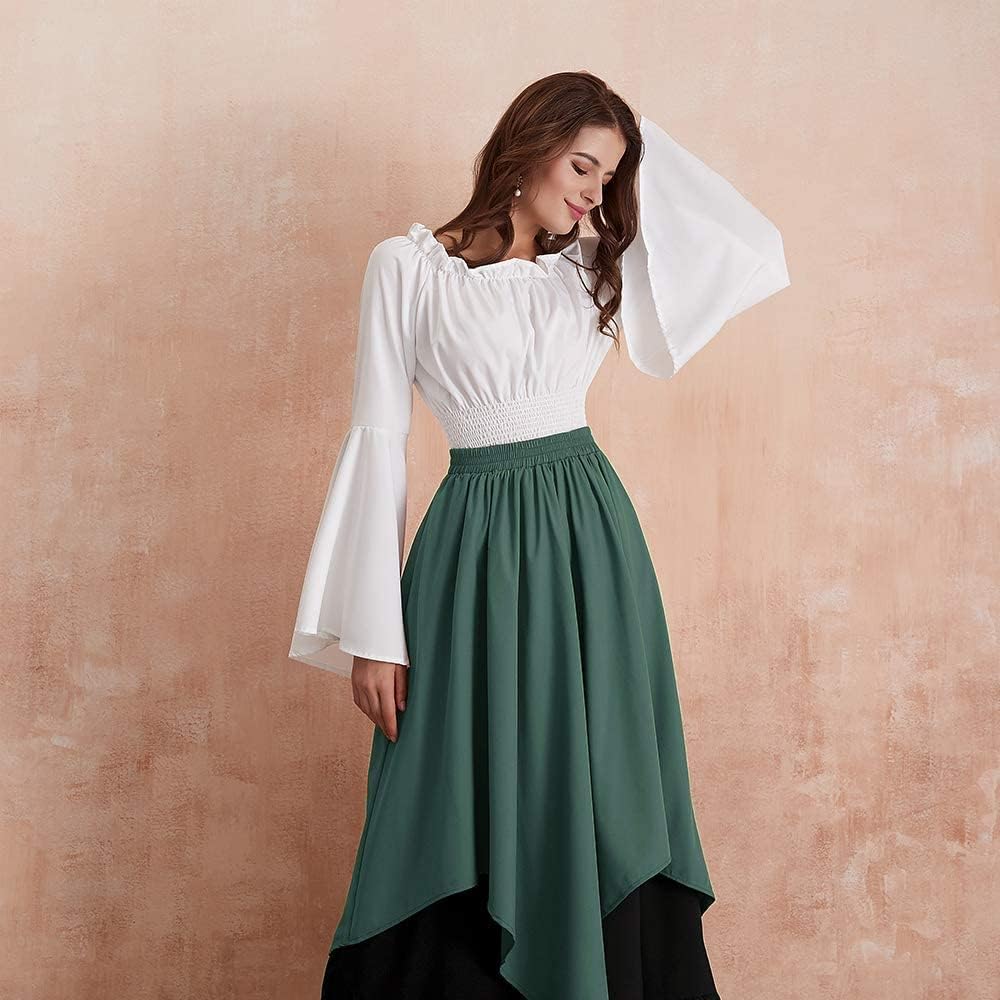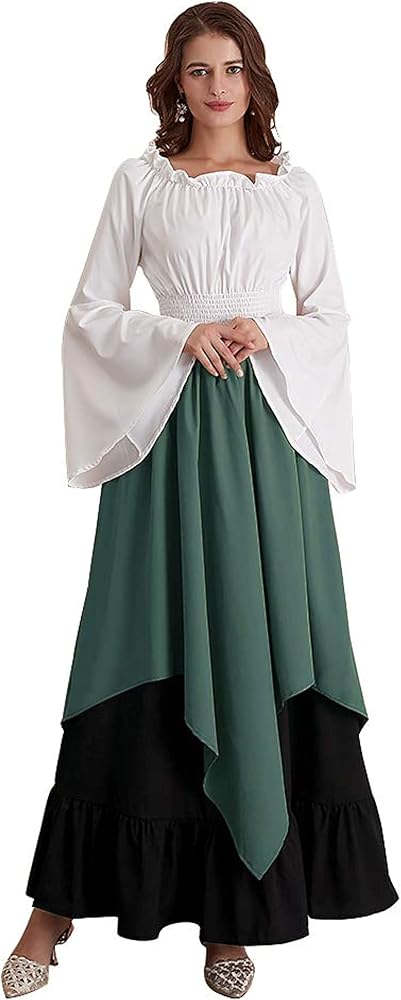 🎃 المزايا - أكمام طويلة واسعة، رقبة دائرية، طول يصل إلى الأرض، خصر مرن. فستان الفلاحين غير المنتظم يجمع بين الأناقة والنمط القديم، يجعل الناس أكثر أناقة