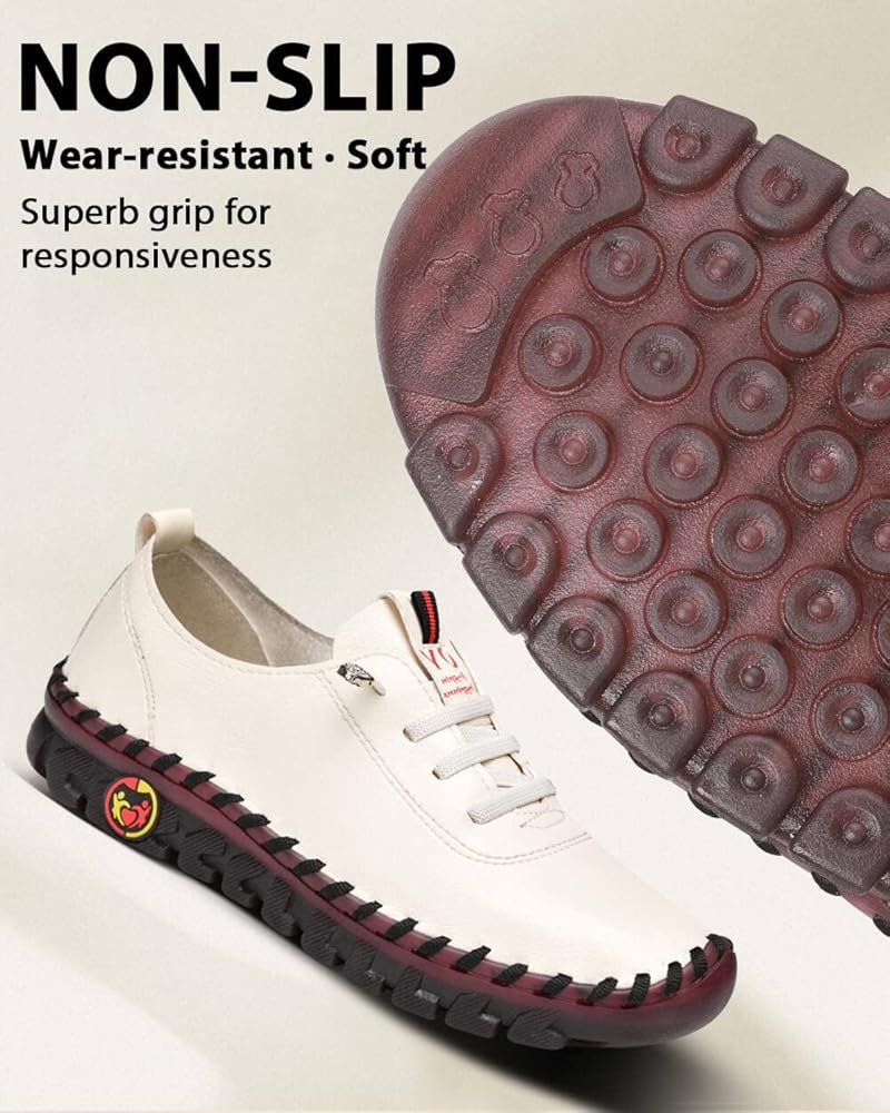 • 【مواد عالية الجودة】مصنوعة من جلد عالي الجودة، الأحذية الكاجوال النسائية خفيفة الوزن وقوية ومرنة ومريحة في الارتداء. وهذه الأحذية الكاجوال سهلة الارتداء للنساء غير قابلة للانزلاق وجيدة التهوية، مما يحافظ على قدميك جافة وباردة طوال اليوم.