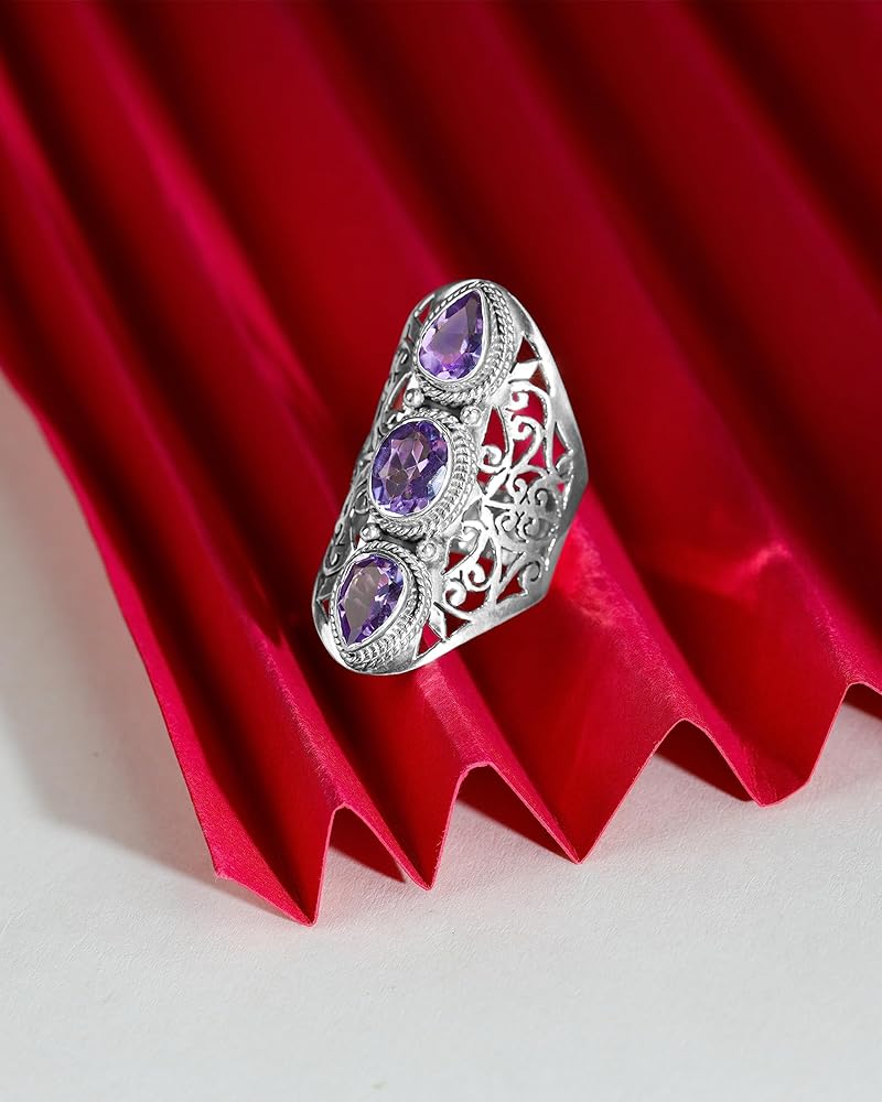 تم تعزيز مجوهرات أحجار الجمشت المصنوعة يدويًا بتصميم جذاب لجعلها تبدو أكثر أناقة وجمالاً.