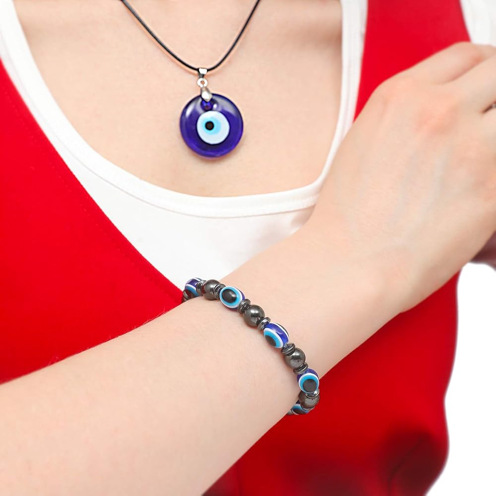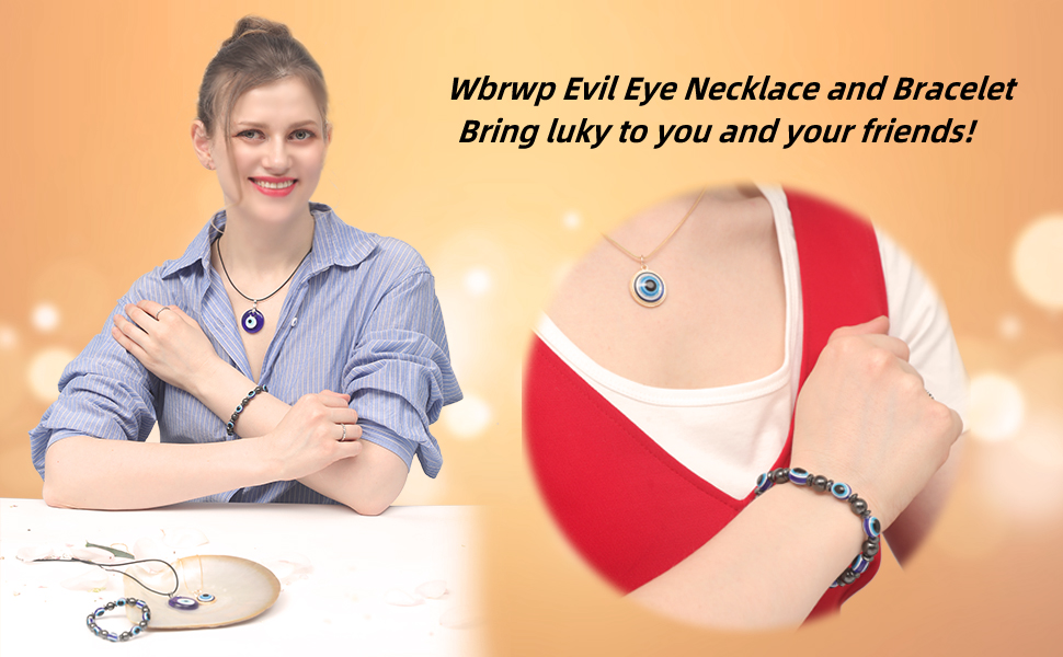 مجموعة أساور قلادة على شكل عين الشر من WBRWP: سلسلة حبل جلدية زجاجية ذات عيون زرقاء/قلادة محظوظة تركية من الفولاذ المقاوم للصدأ ومجموعة سوار عين الشر الأزرق للنساء والرجال والأولاد والبنات
