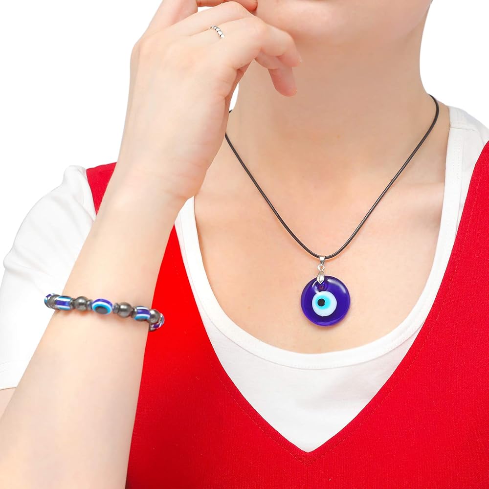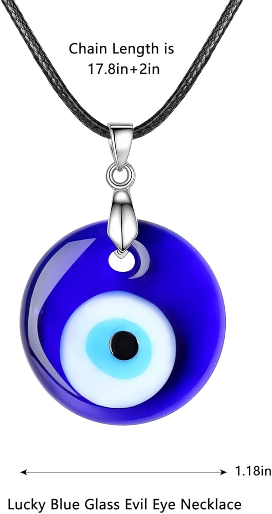 🎁[قلادة عين الشر للنساء والرجال] - قلادة سلسلة الحبال الجلدية ذات العين الزجاجية عملية لأنشطتك اليومية أو الحفلات أو الذكرى السنوية أو الاجتماعات؛ قلادة العين الشريرة الخاصة بنا مناسبة للذكور والإناث. سعادتك هي سعادتنا. إذا كان لديك أي أسئلة، فلا تتردد في الاتصال بنا، وسوف نبذل قصارى جهدنا لمساعدتك على حلها.