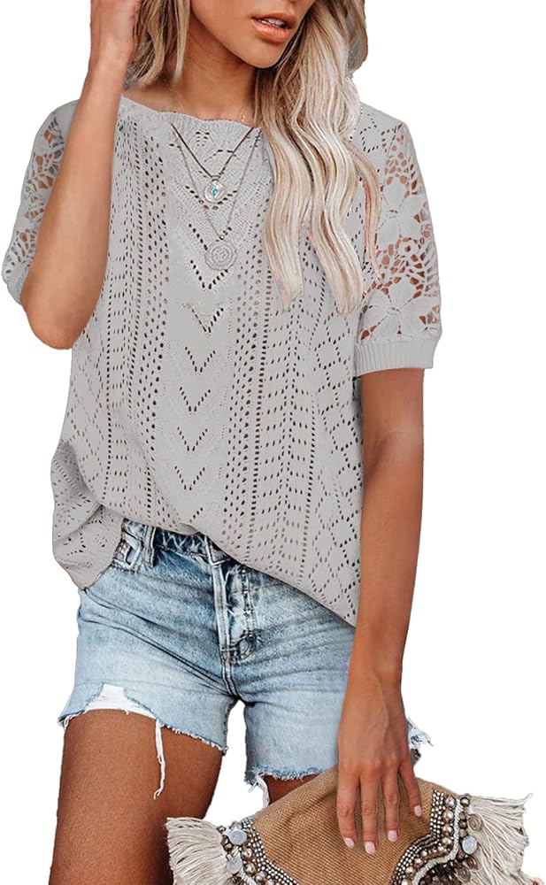 المزايا: بلوفر كروشيه من الدانتيل المحبوك بأكمام قصيرة هو عصري وأنيق. ميزة الارتداء، رقبة مستديرة، لون نقي، فضفاض، كبير الحجم. الميزات: سترة محبوكة مجوفة بأكمام فانوس عصرية وأنيقة. ميزة الارتداء، رقبة مستديرة، لون نقي، فضفاض، كبير الحجم.