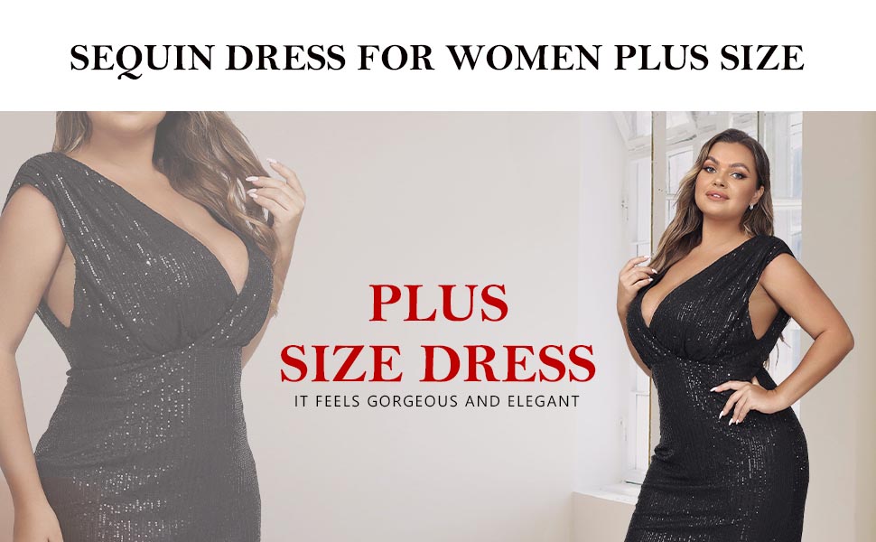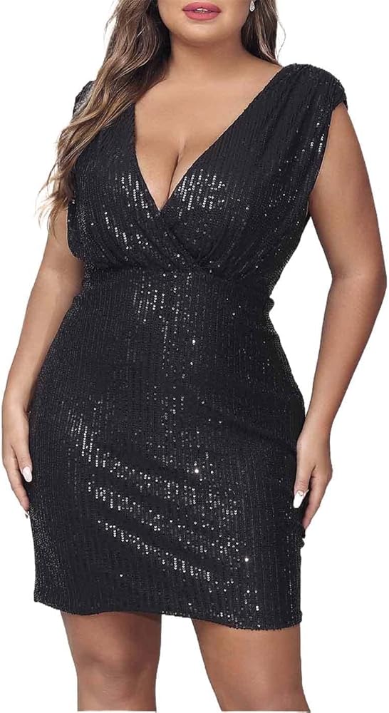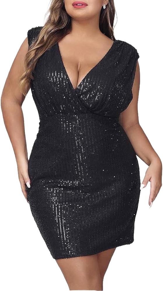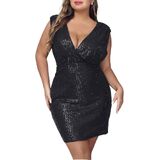 فستان ضيق بفتحة رقبة على شكل حرف V مع ترتر مناسب للنساء ذوات المقاسات الكبيرة، يُظهر منحنياتك ويجعلك تبدين جذابة وأنيقة.