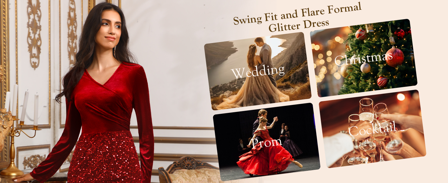 【Material of Cocktail Dress】 The material is stretchy and very comfortable.Soft and breathable velvet material provides a feeling of luxury while keeping you comfy all day or night. make you more graceful and elegant in fall and winter party.