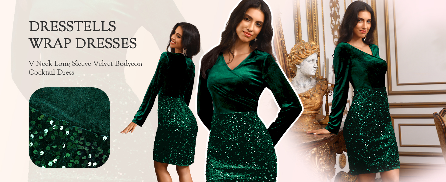 【Features of Wrap Dress】The v-neck slim fitting velvet dress makes your body look more sexy and charming, and the high waisted design can elongate your body proportions, making you the most beautiful woman at Christmas and New Year parties!