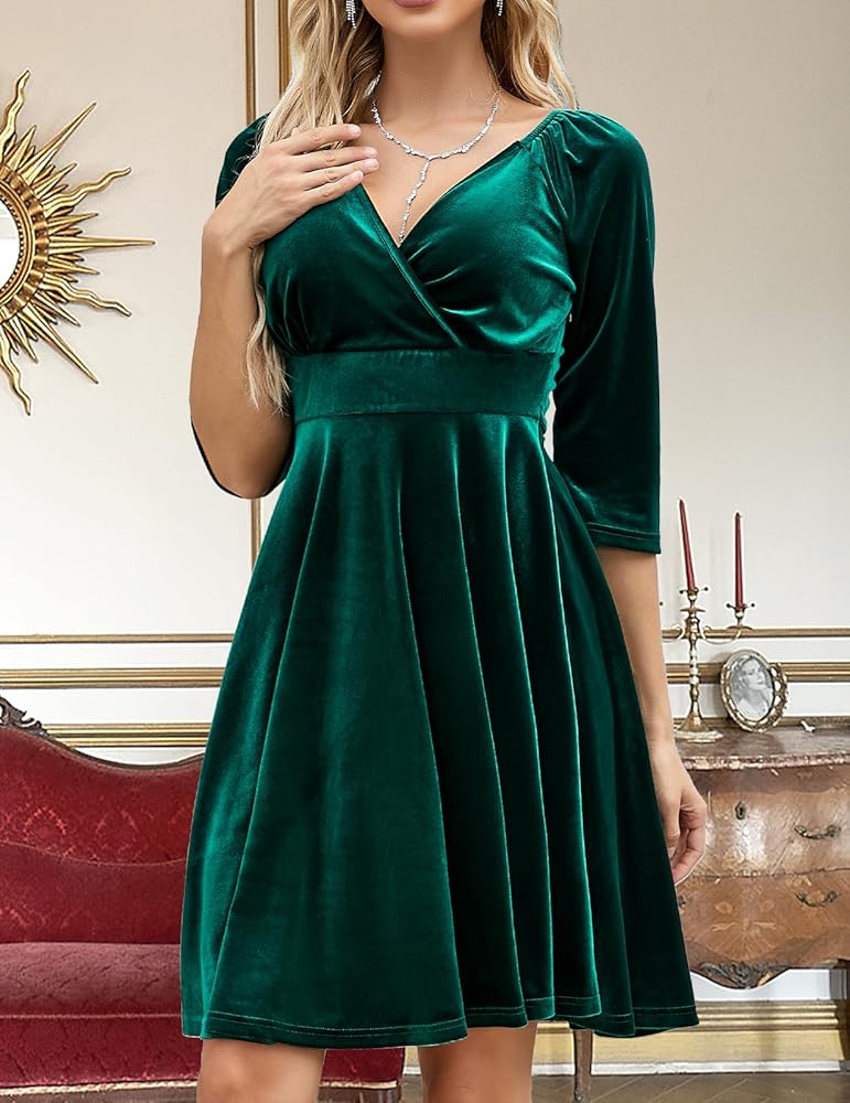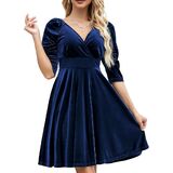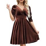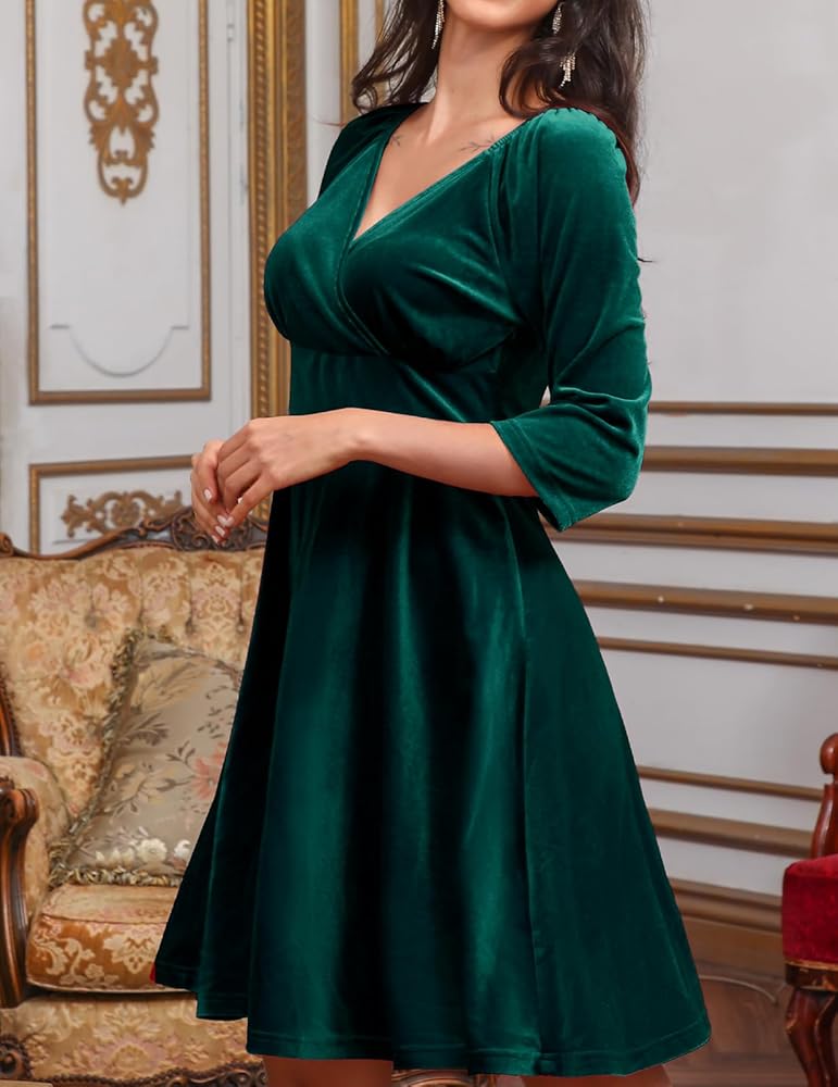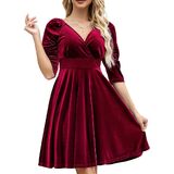 DRESSTELLS Velvet Wrap Dresses for Women 2023 V Neck A Line Party Dress Formal Wedding Dress The design of this velvet slim fitting dress is very in line with women's body characteristics. Wearing it, you will be the forefront of fashion in 2023, and everyone will be attracted and praised by you. The fabric of this wrap dress is very breathable and comfortable, and the warm velvet material wraps around your body in the cold winter, leaving you in a very relaxed and comfortable state. The sexy v-neck design of cocktail dress allows you to showcase a more charming feminine demeanor and become the most eye-catching star in the crowd. The design of 3/4 sleeves is more warm compared to short sleeves and more convenient compared to long sleeves, making you more lightweight and comfortable in various gatherings, dates, holidays, holidays, weddings, cocktails, and leisure activities. A formal wedding dress with a high waisted A-line can elongate your body proportions, make your legs longer, and hide your belly, highlighting the elegance and sexiness of women. The elastic design of the waist makes it more comfortable for you to wear.