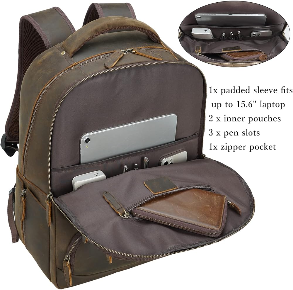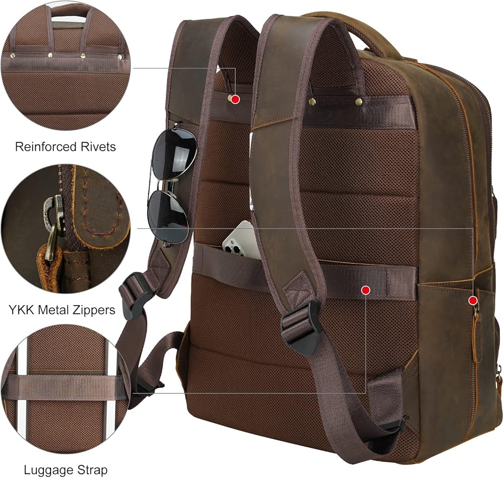 【اشترِ بثقة】التزام الجودة لمدة عام واحد منذ شراء حقيبة الظهر الجلدية للسفر للرجال، إذا كان لديك أي أسئلة أو مخاوف، يرجى الاتصال بنا، وسنساعدك على حل أي مشكلات. حقيبة الظهر الجلدية الكبيرة هي هدية رائعة لأعياد الميلاد أو الذكرى السنوية أو عيد الحب أو عيد الأب أو الكريسماس أو حفل افتتاح طلاب الجامعات أو هدية التخرج كحقيبة مدرسية / حقيبة كتب.