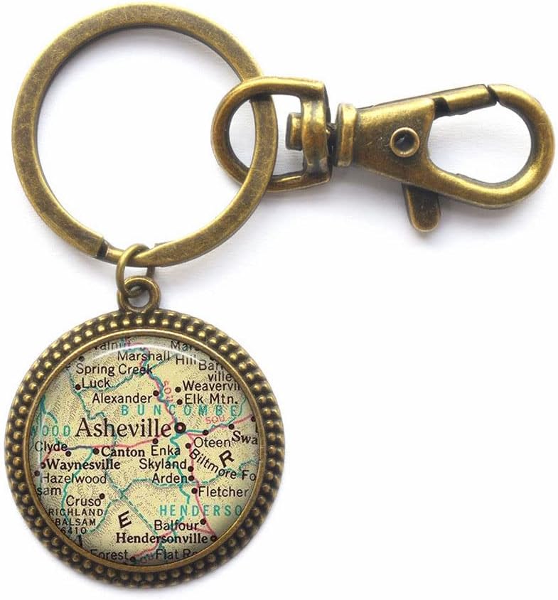سلسلة مفاتيح ساحرة، أشفيل، كارولاينا الشمالية، سلسلة مفاتيح، خريطة آشفيل، حلقة مفاتيح، خريطة مجوهرات أشفيل، سلسلة مفاتيح، حلقة مفاتيح أشفيل، A0120