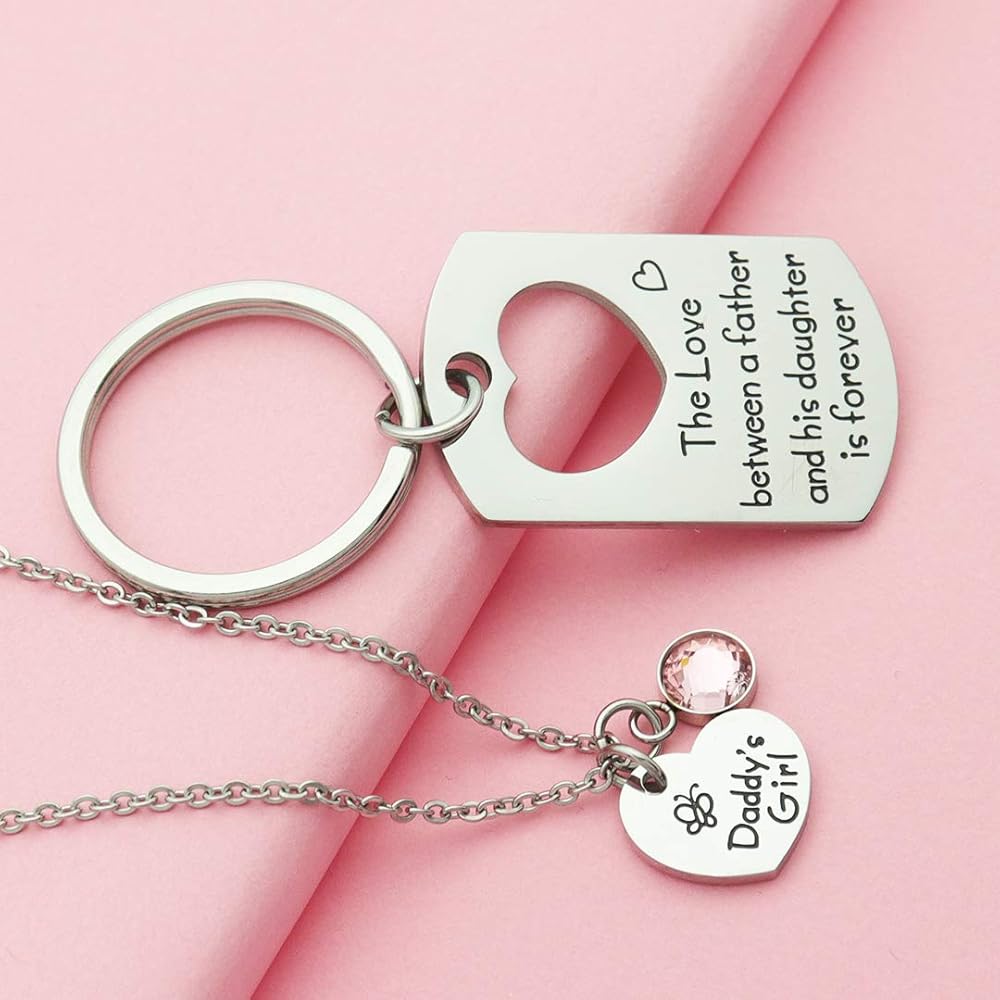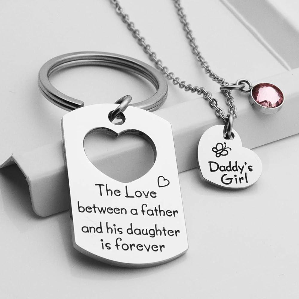 👨👧Daddy daughter gift sets, also known as father-daughter gift sets, are a phenomenal way for your daughter to show their love. This cute gift set features a key chain for dad and a matching necklace for his little princess.