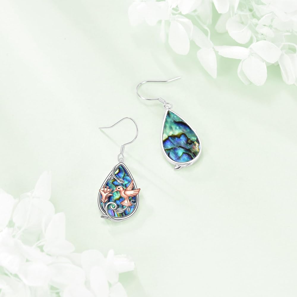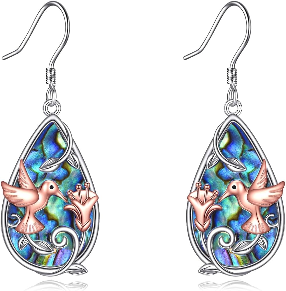 • ❀أقراط الطائر الطنان -- ترمز الطيور الطنانة إلى الحياة والإبداع والإلهام والالتزام. تتميز أقراط أذن البحر هذه بزهرة عباد الشمس الفضية مما يجعلها هدية مثالية للنساء أو مثالية للارتداء اليومي!