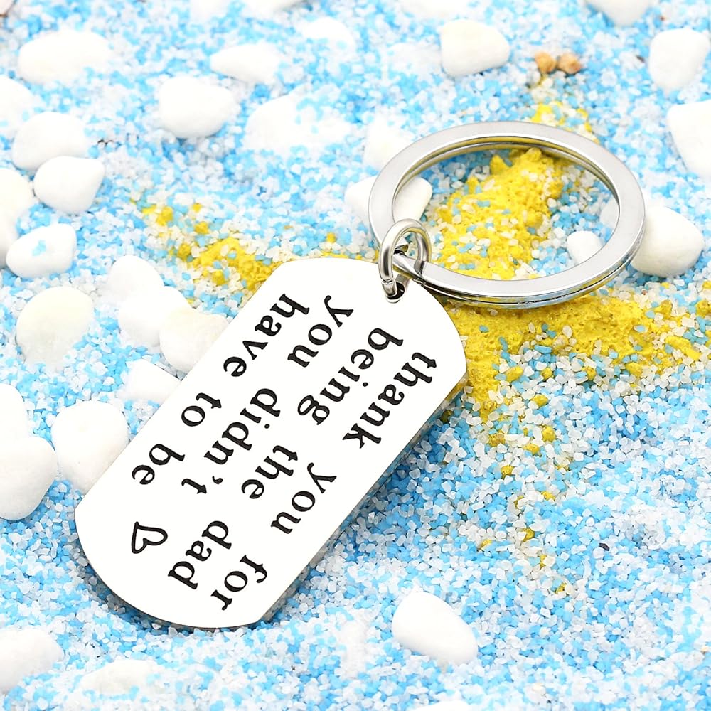 Fathers Day Gifts Key Chain Men for Dad Papa from Daughter Son Thank You for Being The dad You Didn't Have to be Stainless Steel