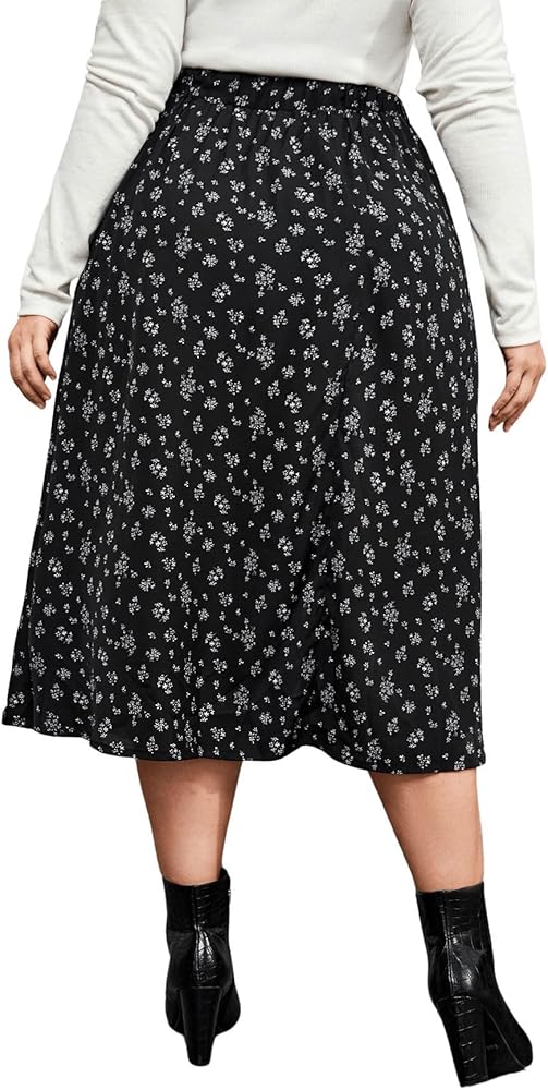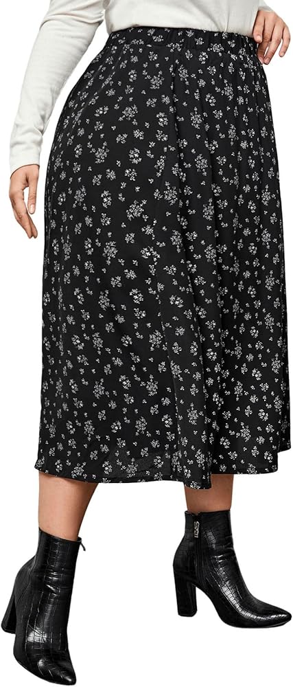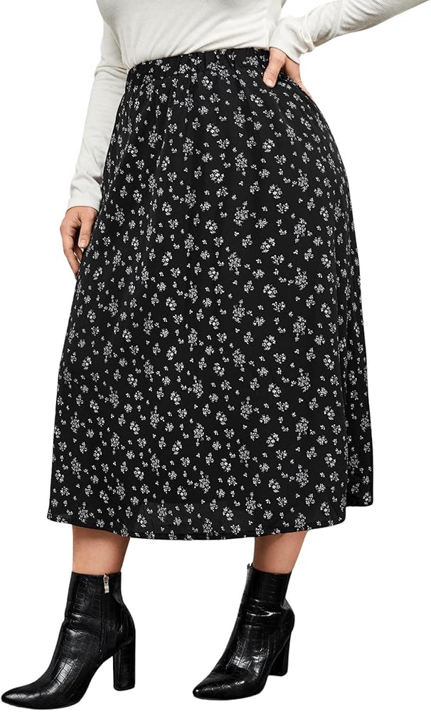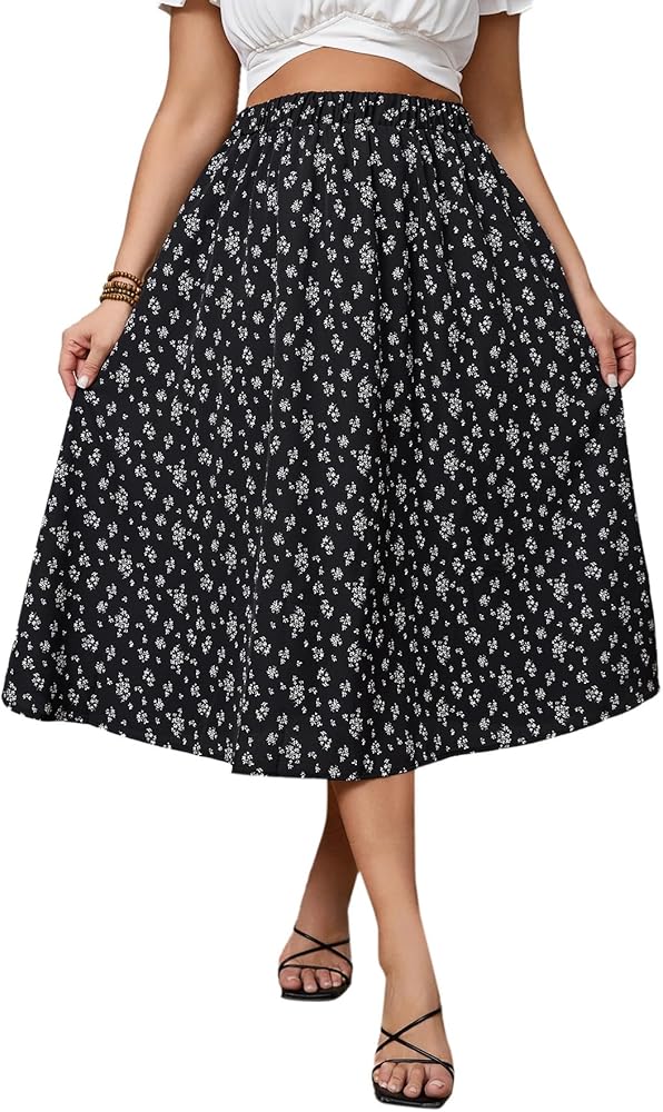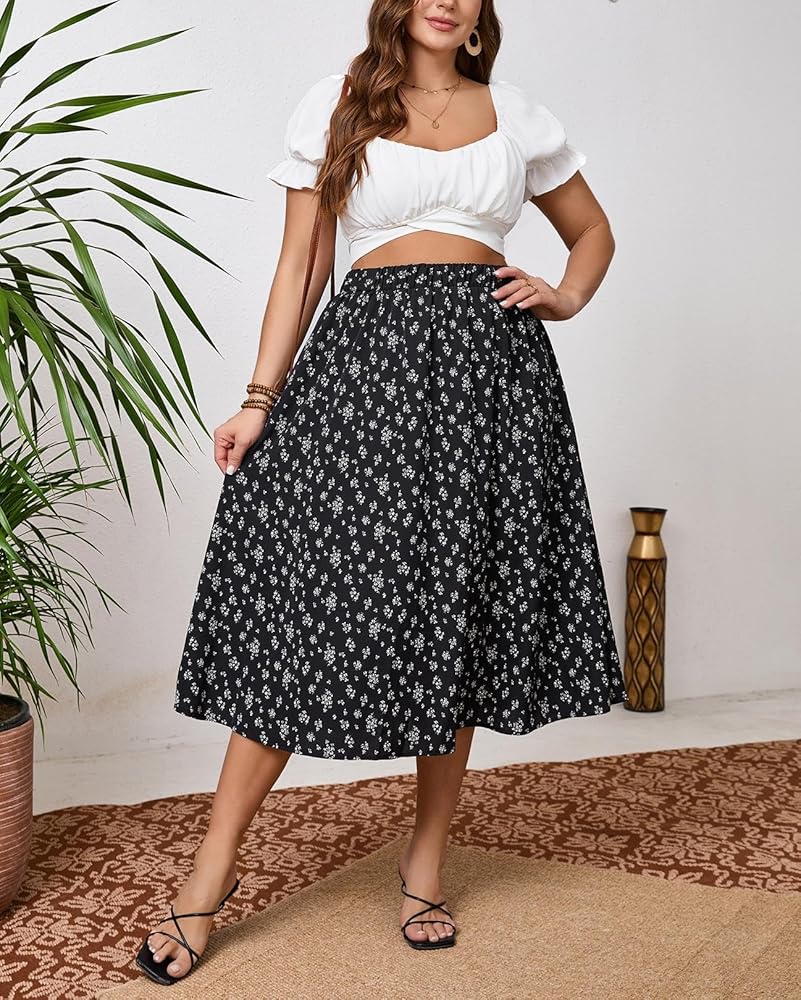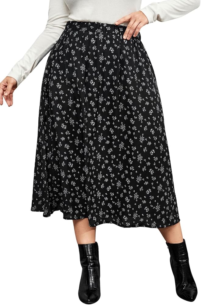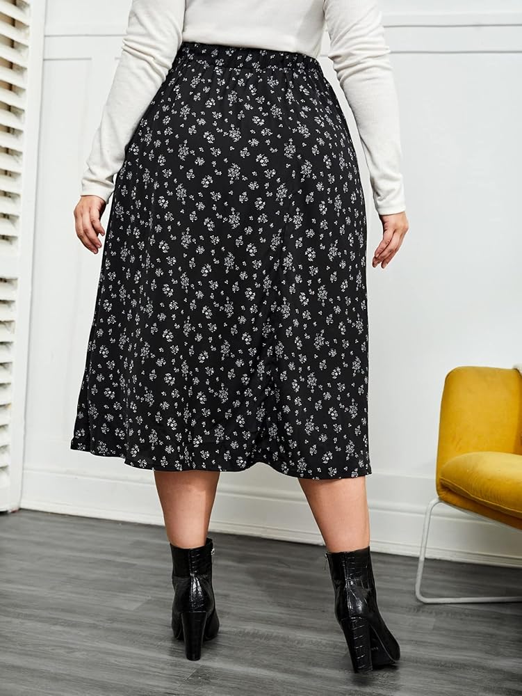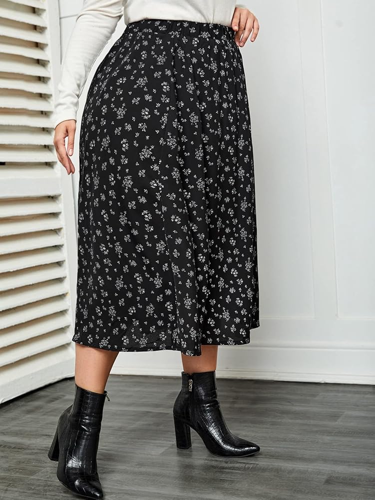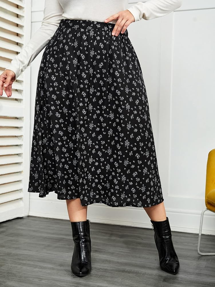 - ✨ تنورة طويلة على شكل حرف A بطبعات زهور بمقاس كبير وخصر عالٍ وواسعة