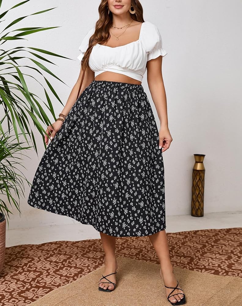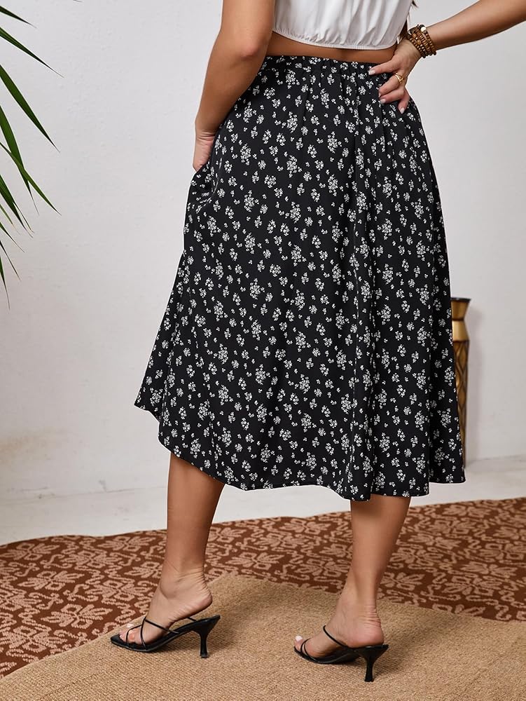 - ✨ المزايا: طباعة زهور، خصر مرتفع، طول طويل، تنورة متوسطة الطول عصرية، تتماشى جيدًا مع التي شيرتات/البلوزة/القمصان بدون أكمام/قمصان الكامي