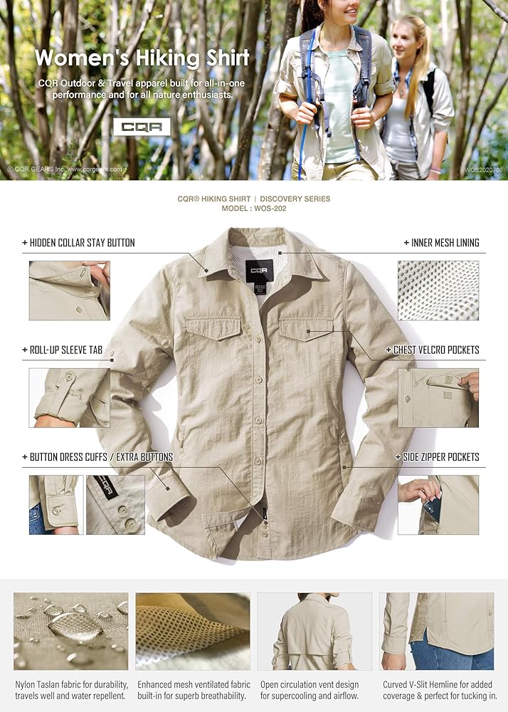 - قميص CQR النسائي للأماكن الخارجية مصمم لجميع الأنشطة والرياضات الخارجية.