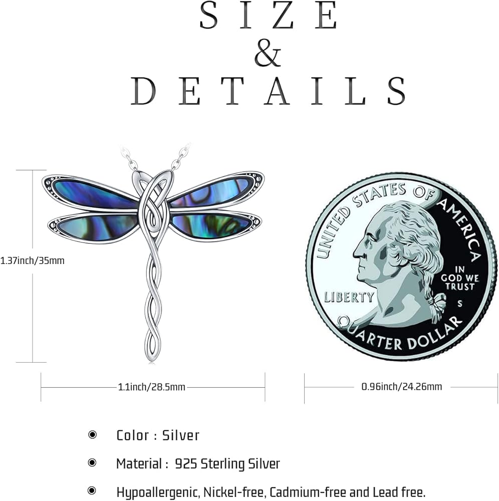الخامة: قلادة اليعسوب مصنوعة من الفضة الإسترلينية النقية، خالية من النيكل والرصاص والكادميوم ولا تسبب الحساسية. مناسبة للنساء والرجال في أي عمر.