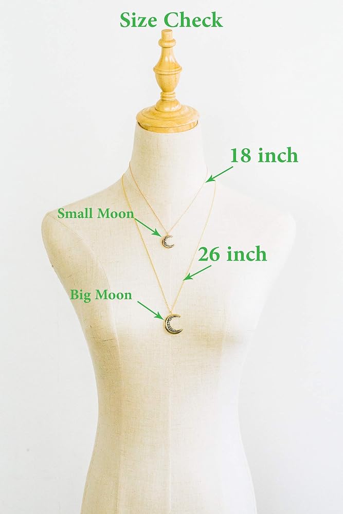 مقاس صغير من Monn Motif: 17 × 19 مم، الطول الإجمالي: حوالي 18 بوصة اللون: فضي، الكمية: 1 كيويت (قلادة واحدة) 16 بوصة مع موسع 2 بوصة ليناسب جميع مقاسات الرقبة بشكل مريح. مثالية للطبقات