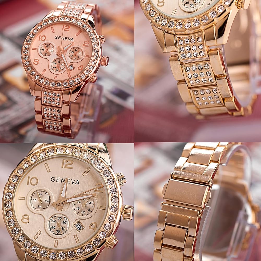 تتضمن العبوة: 3 قطع من الساعات الماسية المصنوعة من الستانلس ستيل باللون الفضي والذهبي والذهبي الوردي