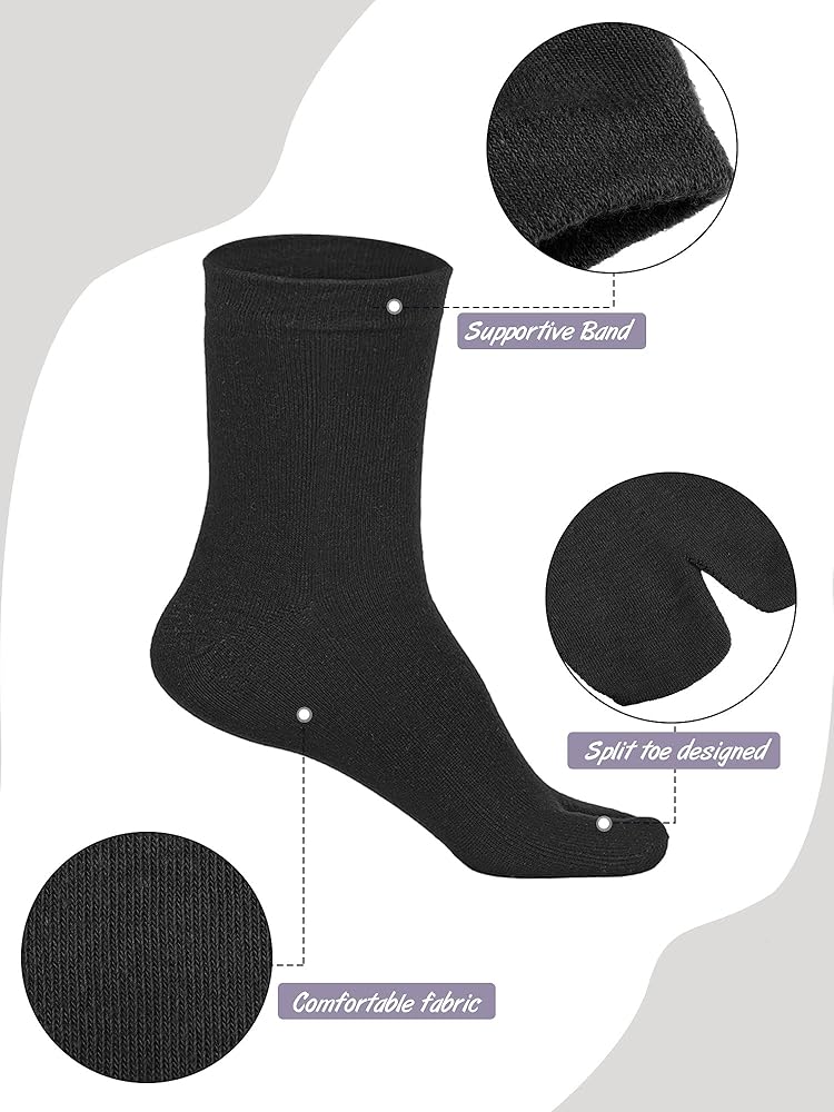 Come with a split toe design that separates your big toe from the rest of your toes, they help reduce friction between your toes and shoes, so they can help protect your toes.
