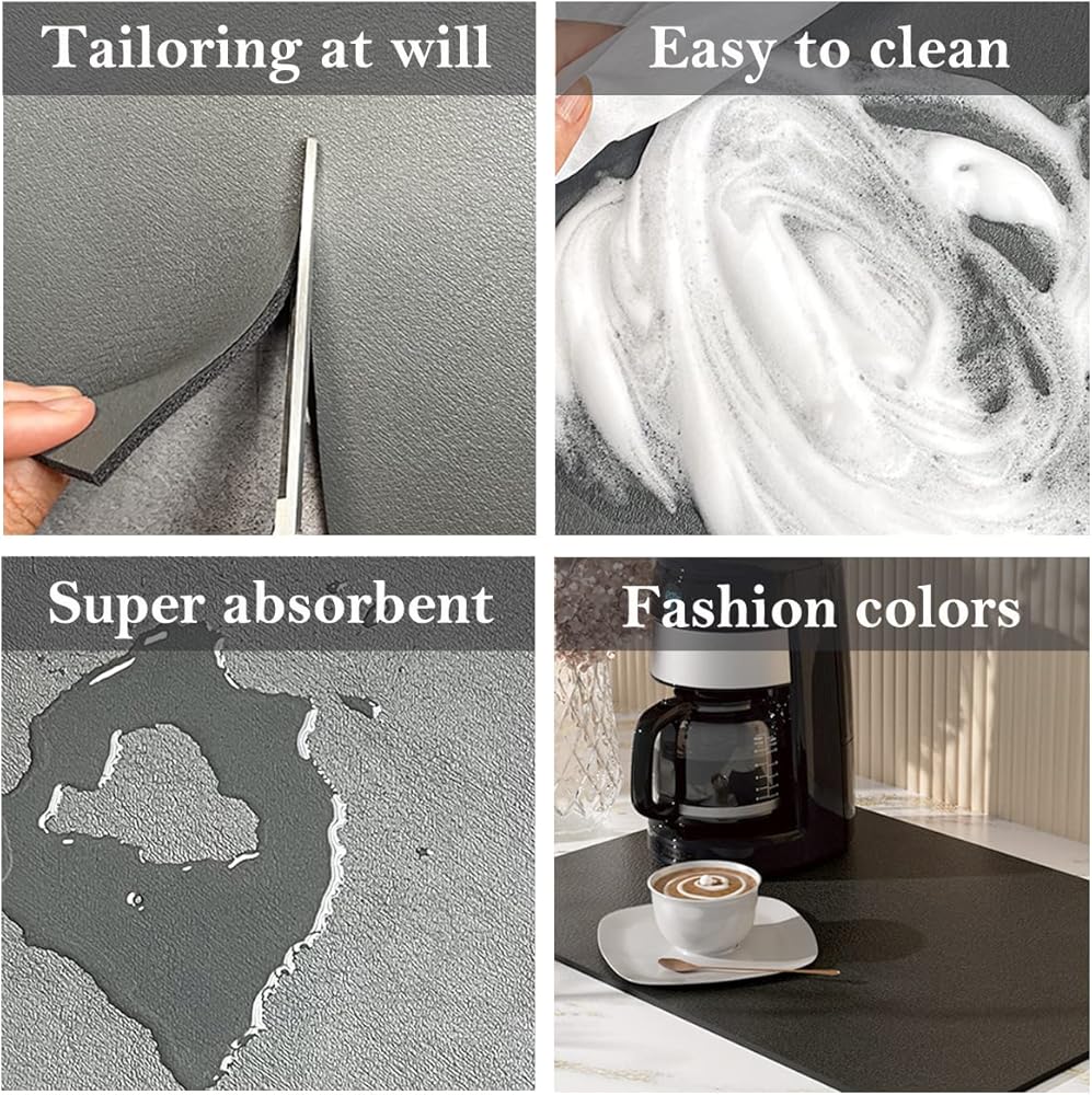 【فائقة الامتصاص】بساط بار القهوة مصنوع من مادة فائقة الامتصاص، حيث يمكن للدياتوميت الناعم عالي الامتصاص امتصاص الماء ورذاذ القهوة على الفور دون أن يتسبب في فوضى سطح الطاولة.