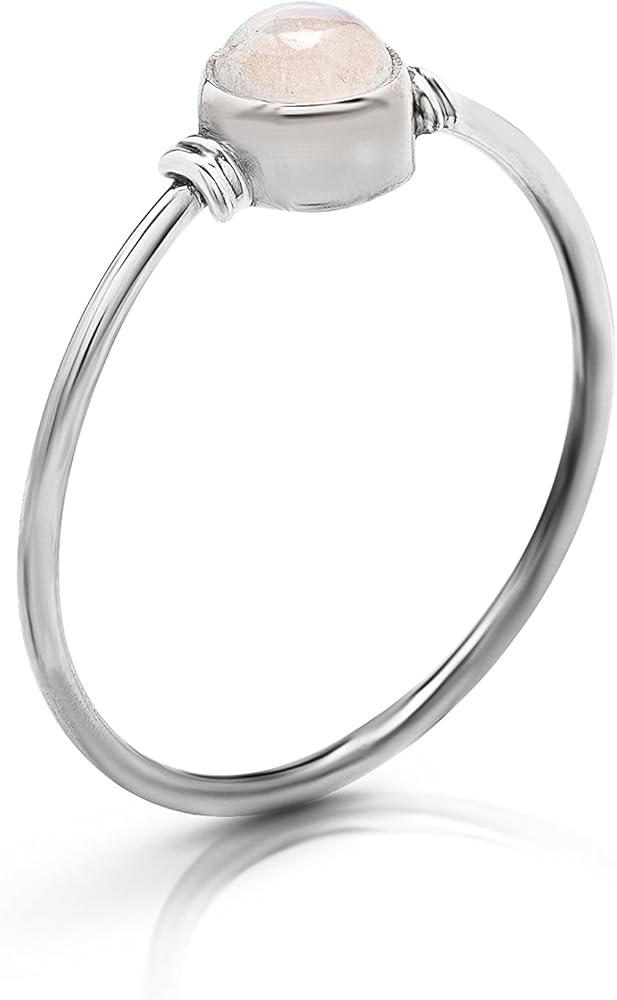 EACH RING IS UNIQUE - Due to the variations of color in the natural moonstone gemstone, each stone is different. Each gem is made up of opalescent, milky whites with variants of blue, gray, pink or green which appear completely randomly in nature. Classic silver, a simple style and a stone which seems to glow from beneath the surface, makes this a ring which is perfect to wear at any time and on any occasion.
