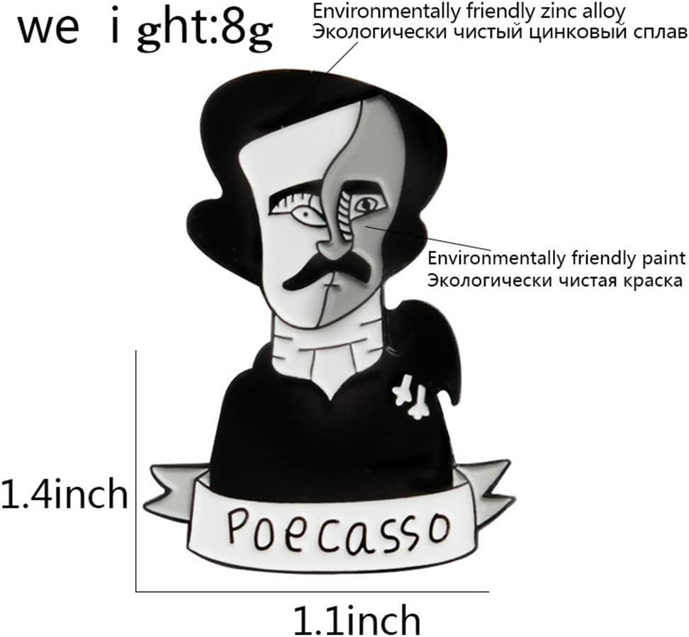 【Best Gift】Edgar Allan Poe Lapel Pin Badge Poecasso Enamel Pin as a small gift can surprise your friends, family and colleagues. Brooch badge to your lover,it can strengthen or stabalize your relation.Good package will make you have a good day when you get .Suitable for Valentine's Day, Christmas,Thanksgiving,halloween ,mothers' holidays, anniversaries, weddings and birthdays or any Special festivals.