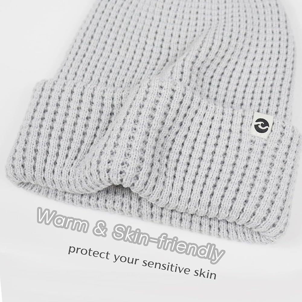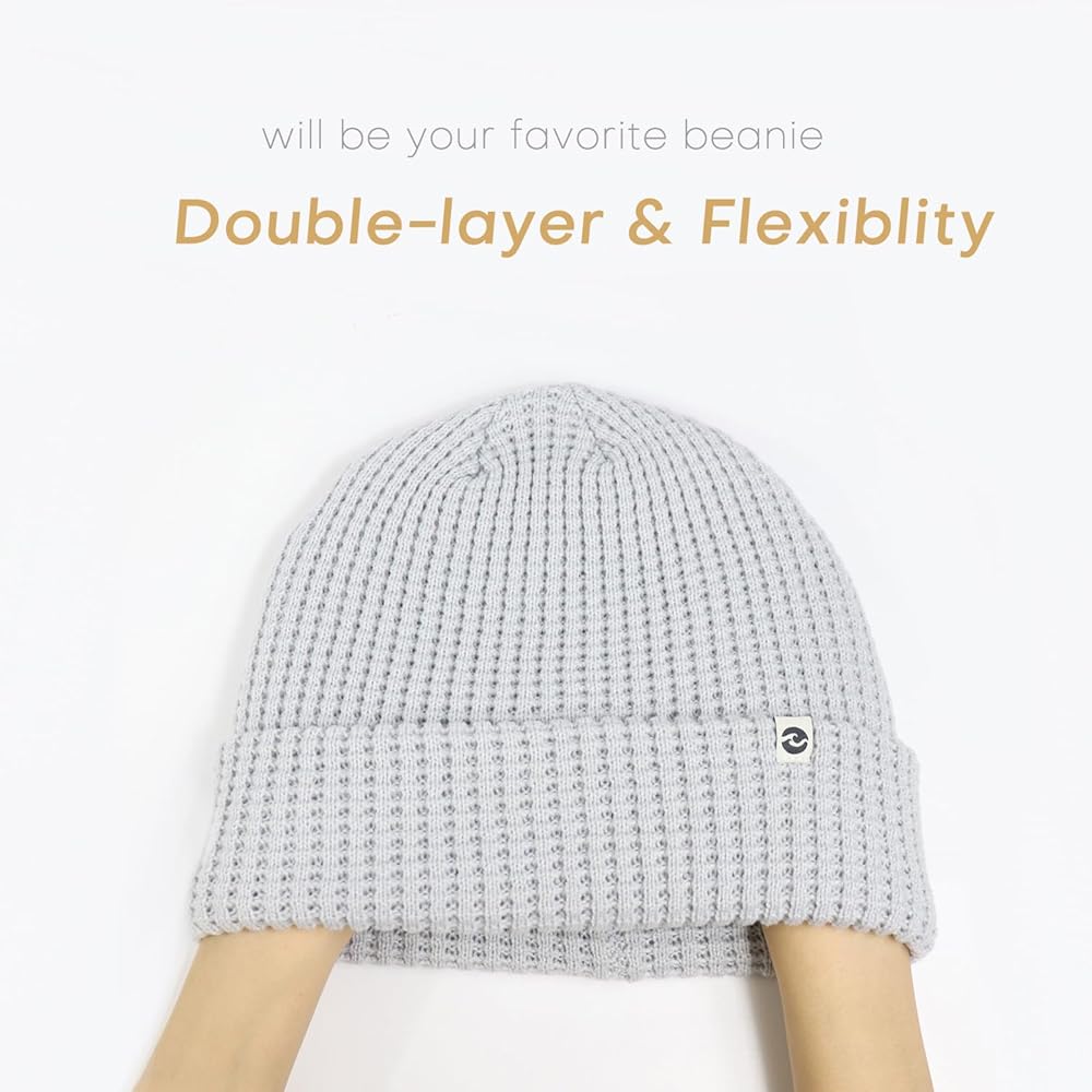 ❤ CLASSIC WAFFLE STYLE - Unique waffle design is free to match your daily look with chic color. This knitted waffle fabric keeps the warmth without adding extra weight. Will be your new favorite beanie!