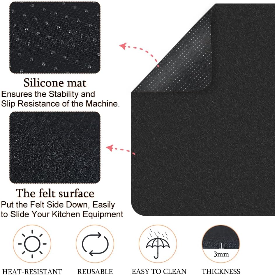 HEAT RESISTANT MAT FOR KITCHEN APPLIANCES: Felt resistant mat can protect the your home countertop from heat and scratches damage from kitchen equipment like air fryer, It works perfectly and makes your kitchen appliances easier to slide out from under the cabinets