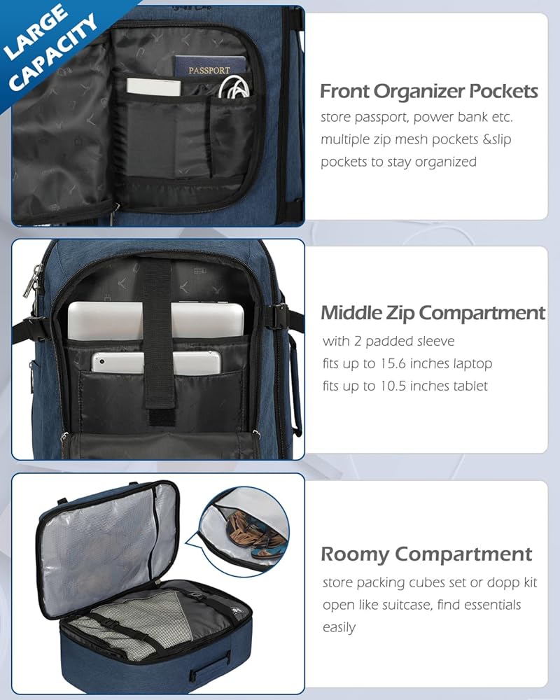Hynes Eagle Travel Backpack 40L Flight Approved Carry on Backpack Men Large Cabin Weekender Laptop Backpack Women 15.6 inches Blue 2023 Hynes Eagle Travel Backpack 40L Flight Approved Carry on Backpack Men Large Cabin Weekender Laptop Backpack Women 15.6 inches Grey 2023