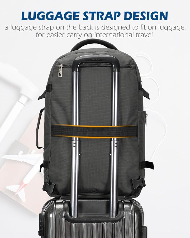 【2023 New Version】carry on backpack is designed with added back trolley strap for more convenient, you can quicker attach the travel cabin backpack to the luggage handle and move more easily around the airport or wherever you go【Wet Compartment】travel backpack for men and women designed with 1 new PEVA lining wetproof compartment instead of mesh zip compartment, provides a dedicated place to put away your wet clothes or toiletry items, from damp towel to beach flip flops