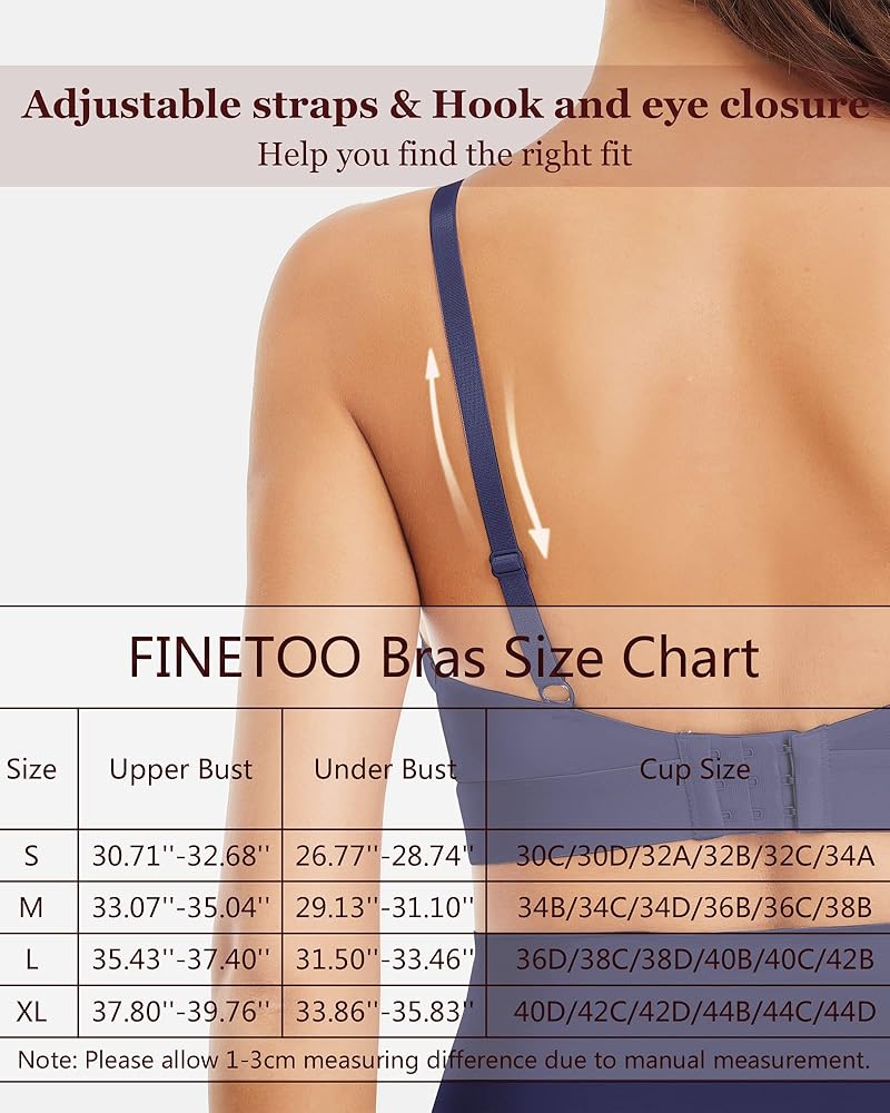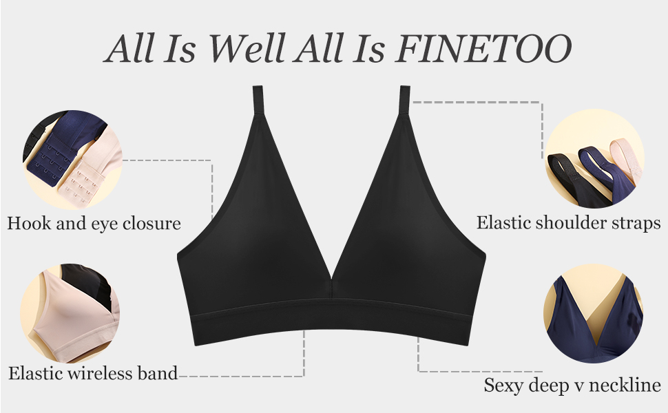 FINETOO حمالات صدر لاسلكية للنساء مثير عميق الخامس الرقبة مثلث مبطن Bralette أشرطة قابلة للتعديل حمالة صدر غير مرئية يغرق Bralettes البحرية
