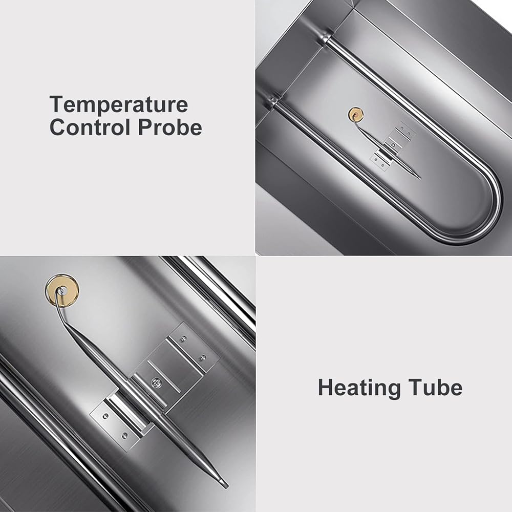 • [تسخين سريع ومتساوي] - بعد تسخين الماء بواسطة وحدة التسخين المدمجة بقدرة 1.5 كيلو وات، يتم نقل الحرارة إلى الشوكولاتة من خلال خزان الفولاذ المقاوم للصدأ، وتذوب الشوكولاتة تدريجيًا. أنبوب التسخين على شكل حرف M، تصل كفاءة التسخين إلى 20%، مما يجعل ذوبان الشوكولاتة سريعًا.