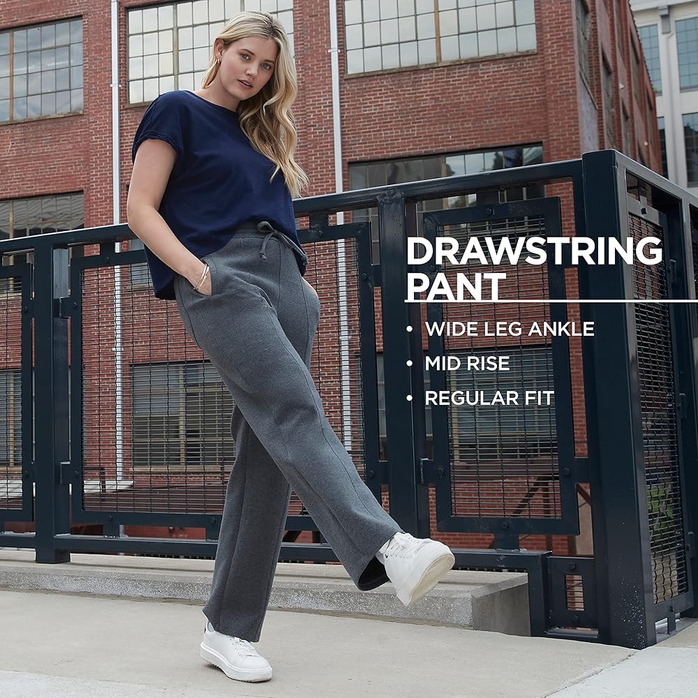 • WIDE LEG. This mid rise drawstring pant features a wide leg at the ankle for a classic, on-trend look. Whether you're headed to a casual movie night with friends or out to dinner, these pants can be dressed up or down for versatile wear.