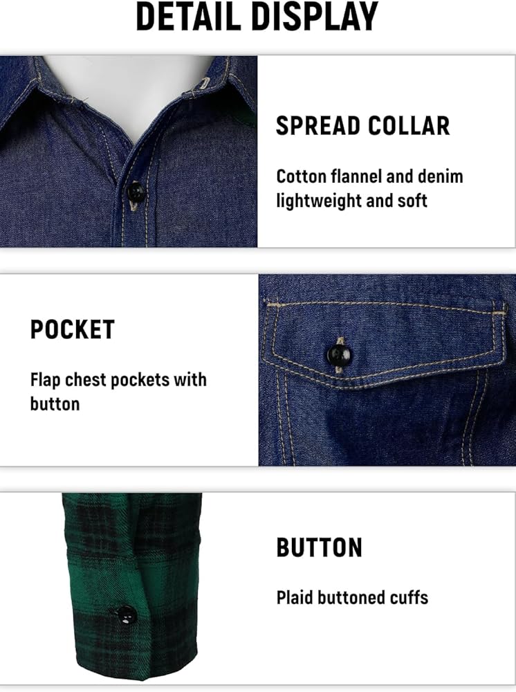 نسيج فاخر: قميص الدنيم طويل الأكمام مصنوع من القطن بنسبة 100% مصنوع من نسيج مسامي وخفيف الوزن وناعم ومريح في الارتداء.