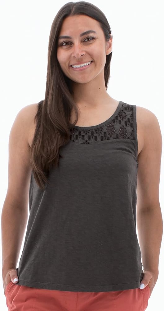 With a delicate appearance but a dependable disposition, the Seychelle Tank Top will stand up to all warm weather occasions. This tank top features 100% organic cotton and embroidery that mimics the appearance of lace along the yoke without its delicate nature. Other details are subtle, allowing the embroidered bodice to shine, including a textured knit body and a button closure on the back. Relaxed fit allows for extra comfort, as does the seal from Fair Trade Certified, which ensures this top was made by well-paid and fairly treated workers. Like this style? Check out the entire Seychelle series, featuring a short and long sleeve top and flowy dress.