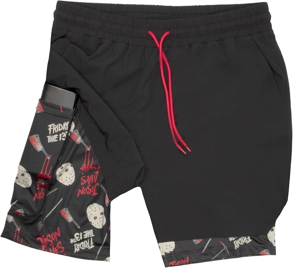 Friday the 13th-Themed Graphics: Featuring Friday the 13th-themed graphics on the inner lining, these shorts add a unique and thrilling twist to your fitness attire, expressing your distinctive style with every workout.
