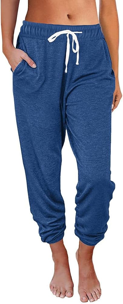 Wsirmet Womens Baggy Sweatpants Lightweight Running Drawstring Joggers with Pockets Tapered Casual Lounge Pants for Athletic Workout Training.