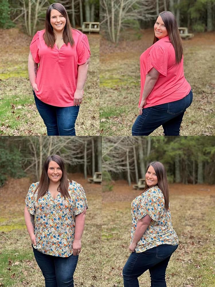 - قمصان نسائية بمقاس كبير بتصميم فضفاض لتغطية البطن وإخفاء البطن بشكل لطيف، والأكمام رائعة لتغطية الجزء العلوي من الذراعين