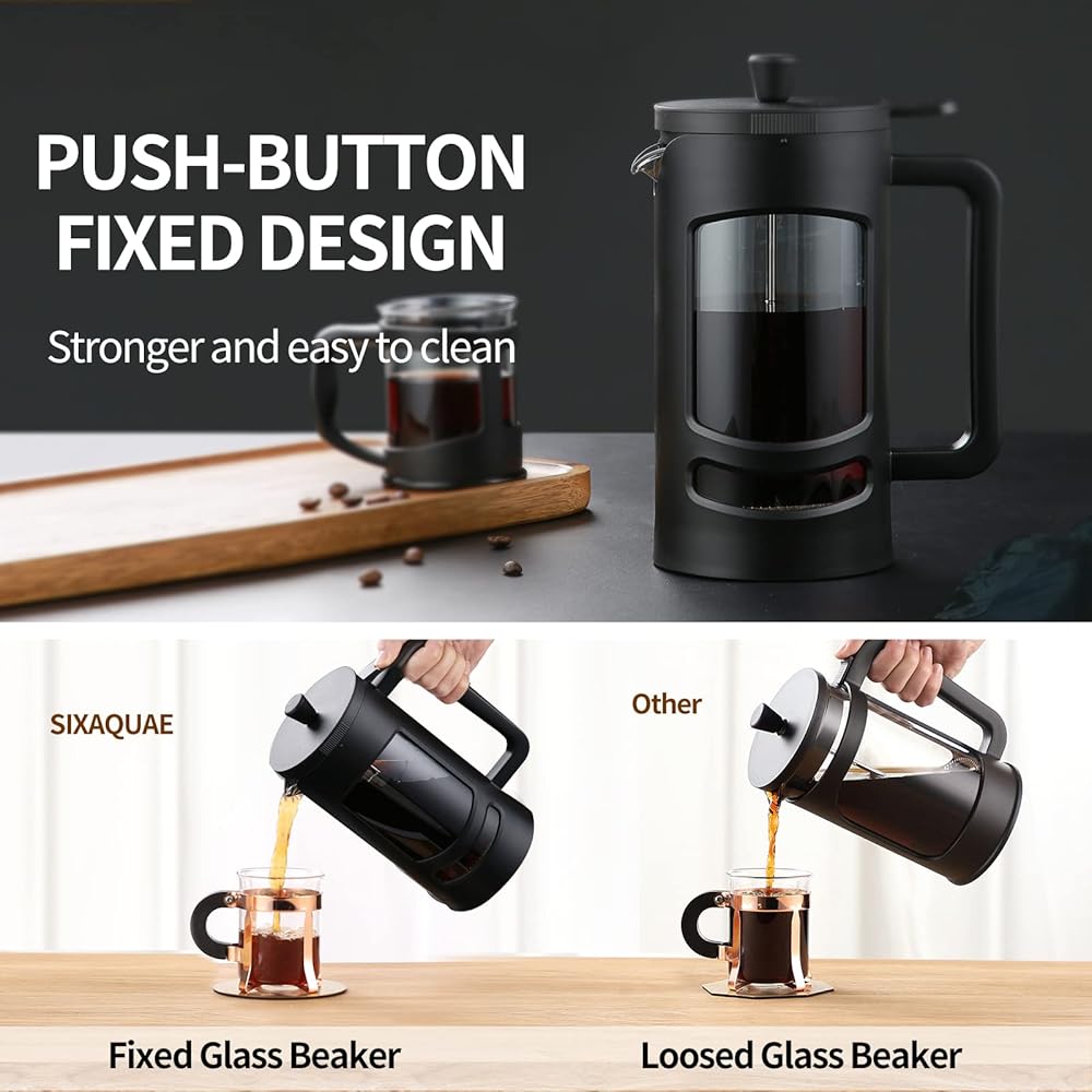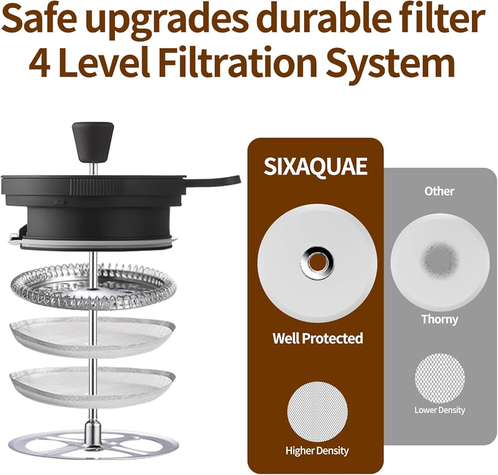 ☕️【سياسة الاستبدال مدى الحياة】 في SIXAQUAE، نأخذ تجربتك مع منتجاتنا على محمل الجد. لهذا السبب نتعهد باستبدال ماكينة الضغط الفرنسية المصنوعة من الفولاذ المقاوم للصدأ في حالة حدوث أي خطأ.