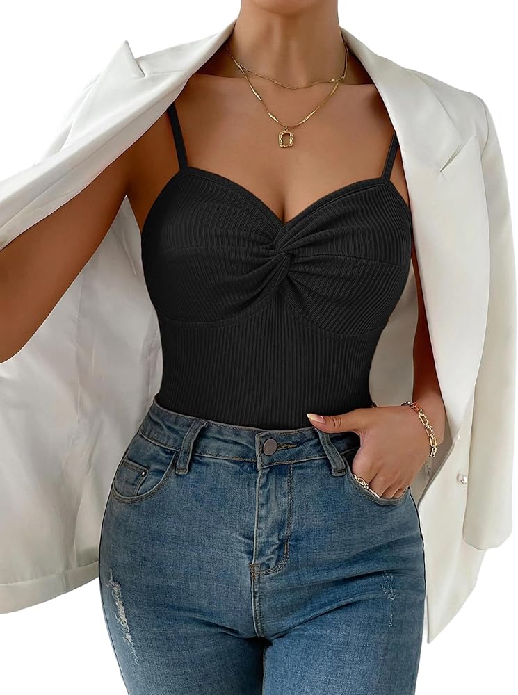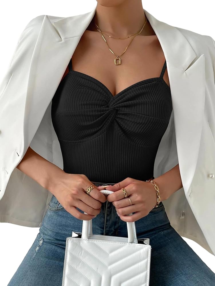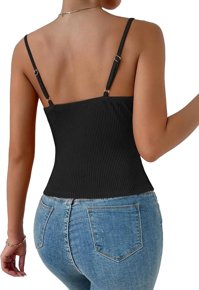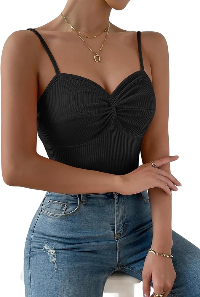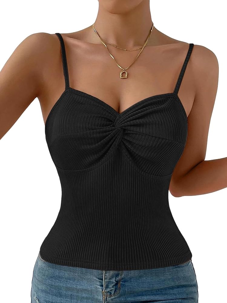 - التصميم: قميص قصير بأشرطة سباجيتي، عقدة ملتوية من الأمام، نسيج مضلع، رقبة على شكل حرف V، بدون ظهر، مقاس نحيف، قمصان كامي مضلعة للنساء،