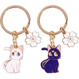 Anime Inspired: Express your love for Anime with this enchanting 2-pack of enamel keyrings featuring iconic black and white cat charms.