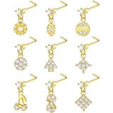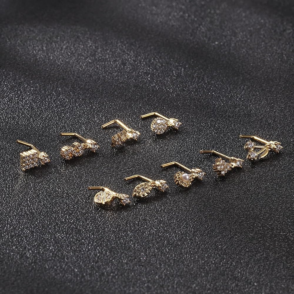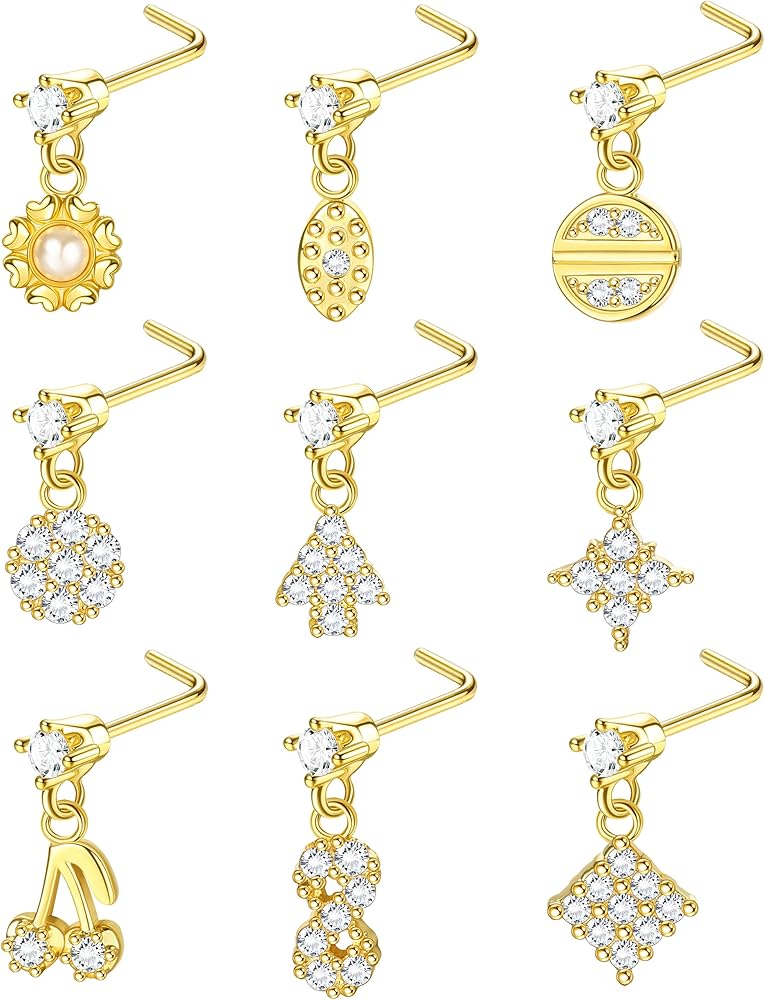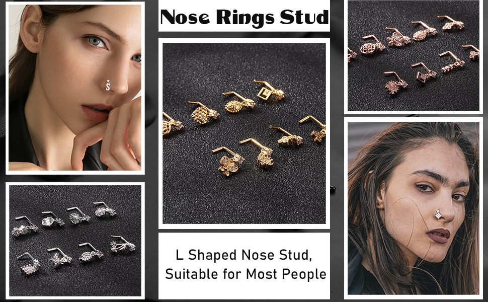 • 💕 【مجموعة أزرار حلقات الأنف】 سوف تحصل على 9 قطع من حلقات الأنف على شكل حرف L في طلب واحد، بما في ذلك مسمار الأنف الصغير واللطيف على شكل زهرة، ومسمار الأنف على شكل فراشة، ومسمار الأنف على شكل قلب، ومسمار الأنف اللامع AAA+ CZ وغيرها من أنماط الموضة. تتوفر أزرار الأنف هذه بثلاثة ألوان: اللون الذهبي، واللون الفضي، واللون الذهبي الوردي، مما يجعلك جذابة وساحرة.