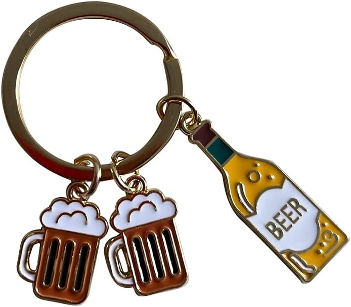 AMOBESTER Beer Keychain Mini Beer Bottle and Beer Cup Charm Keyring Birthday Father's Day Gift for Men Husband, Silver, M
