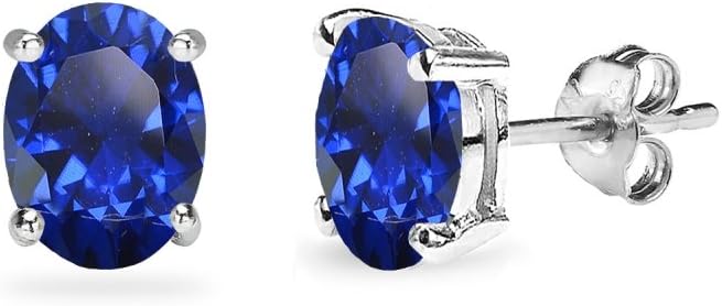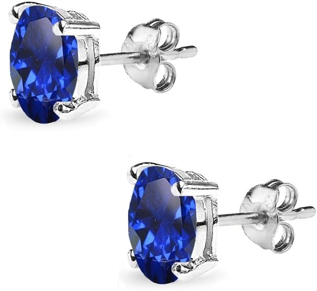 Sterling Silver Created Blue Sapphire Oval-Cut Solitaire Stud Earrings for Women Teens & Girls
