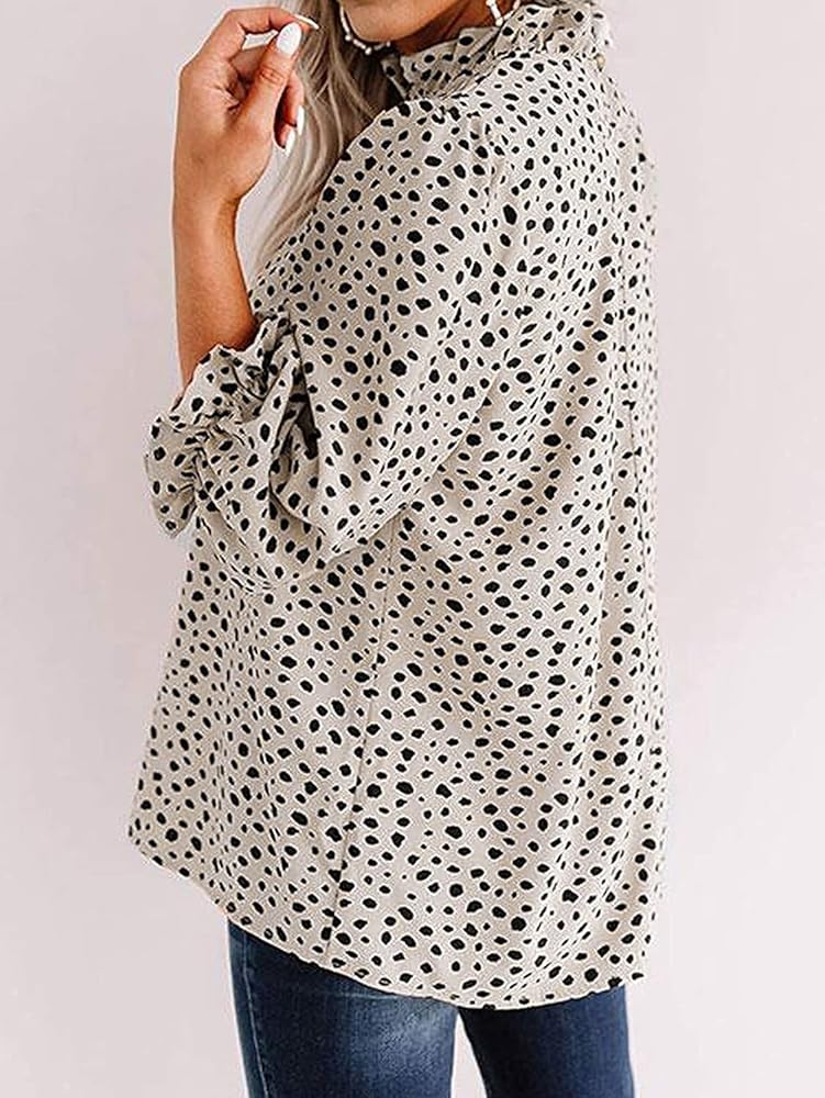 - المزايا: يتميز هذا القميص الأنيق للنساء بطباعة جلد الفهد العصرية، ورقبة وهمية، وخط عنق مكشكش، وأكمام 3/4 مع أساور مرنة، وفتحة زر في الخلف.