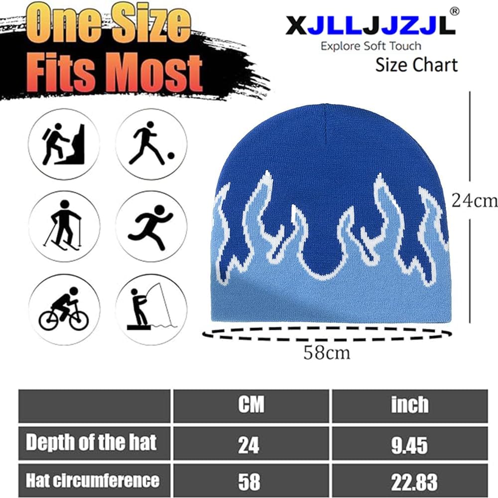 XJLLJJZJL Light Blue Flame Beanie Fire Flame Skullies Knitted Hip Hop Hat Gothic Warm Punk Beanies Casual Outdoor Ski Hat Slouchy Skull Cap, Blue, M-L