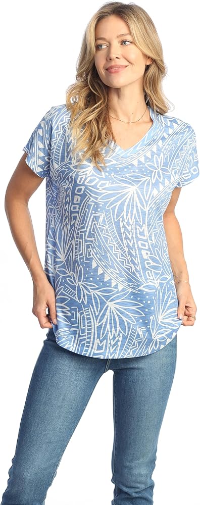 بلوزة تونيك بأكمام قصيرة ورقبة على شكل حرف V من جيس آند جين تروبيك
