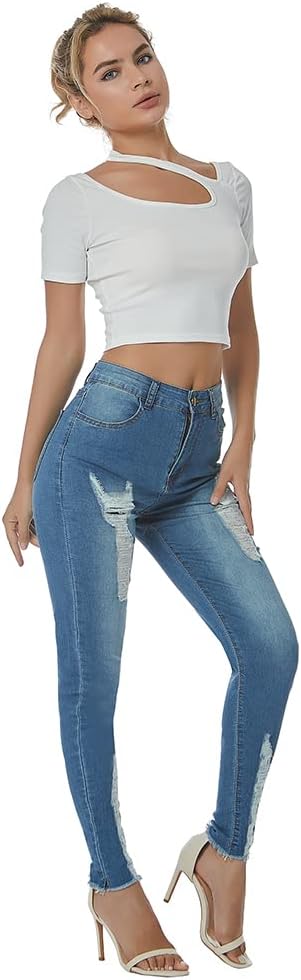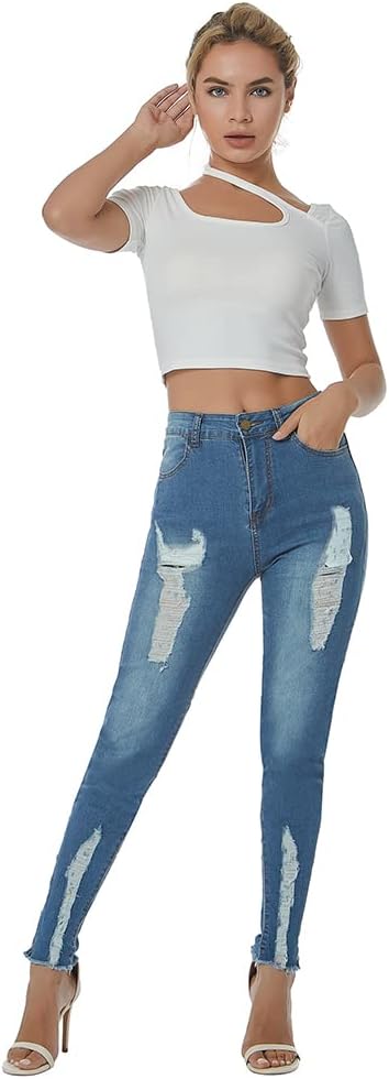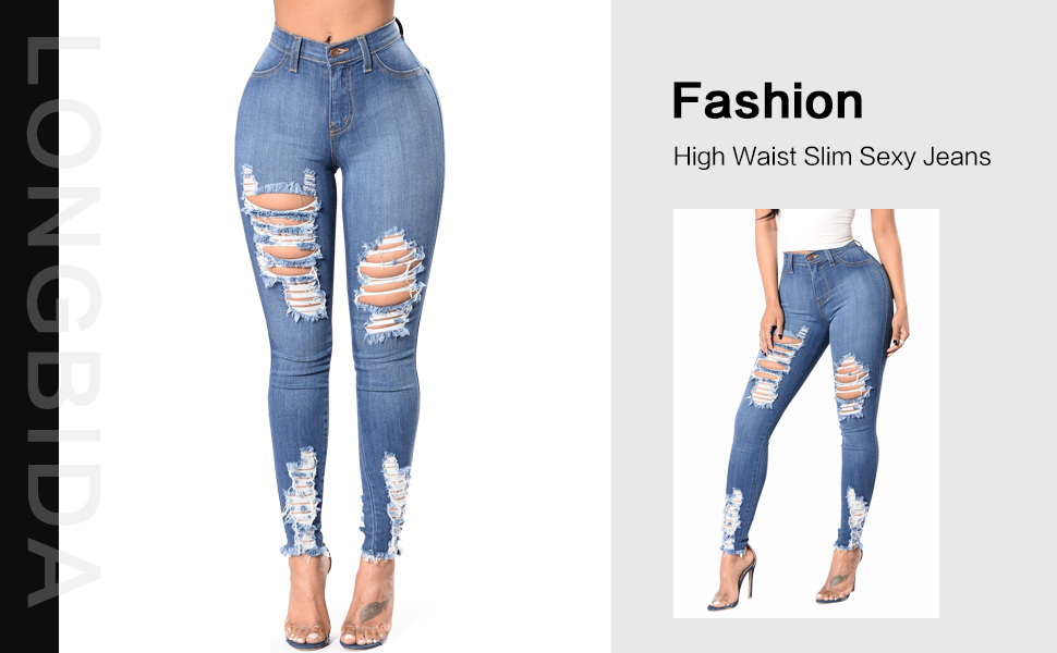 - الجينز المدمر من قماش الدنيم يتناسب بشكل مثالي مع القمصان الأنيقة لإظهار مظهرك المثير