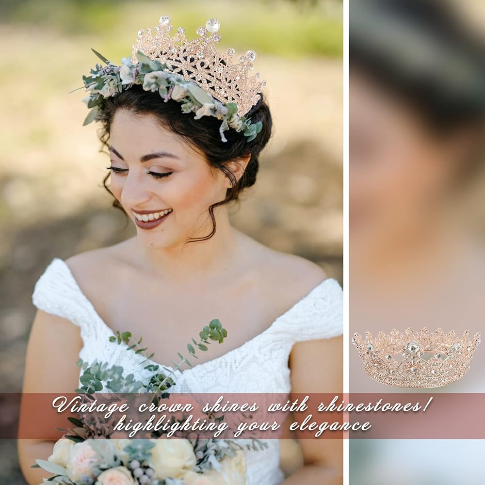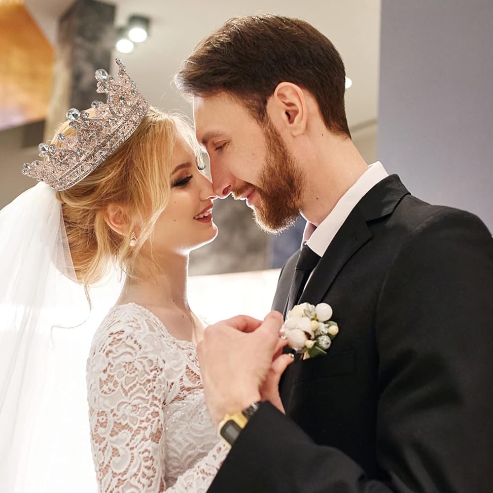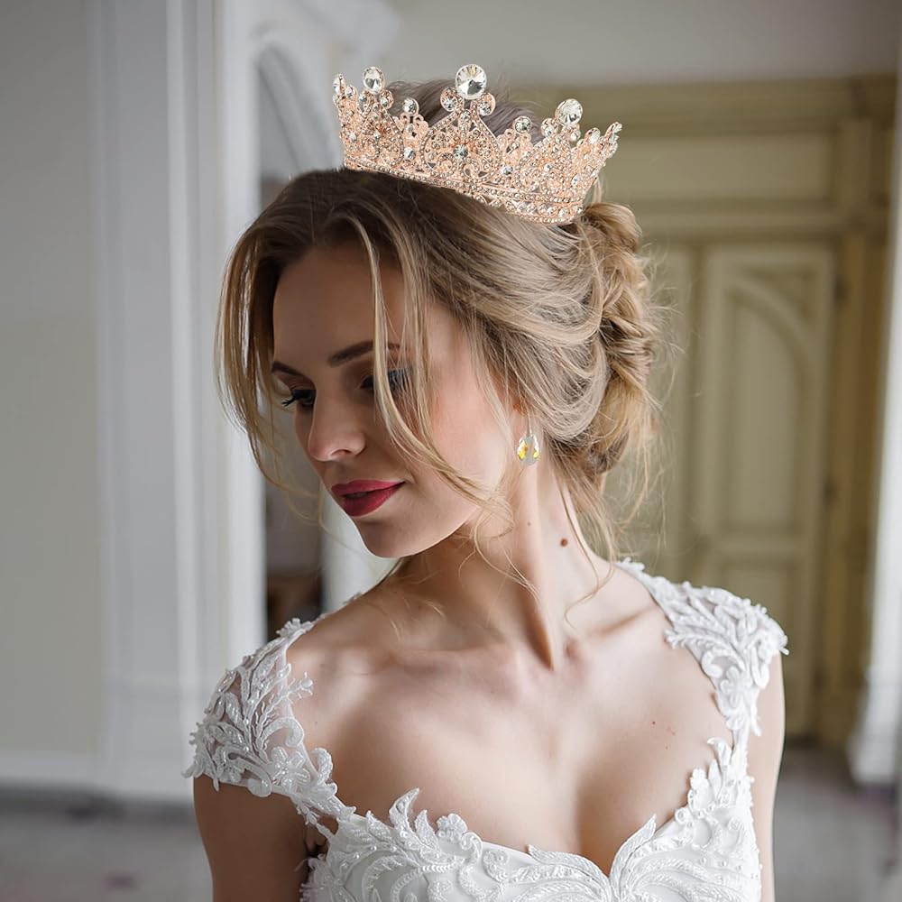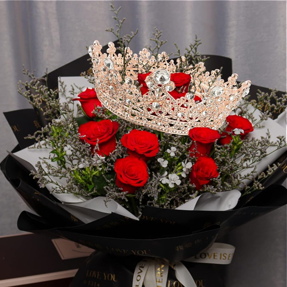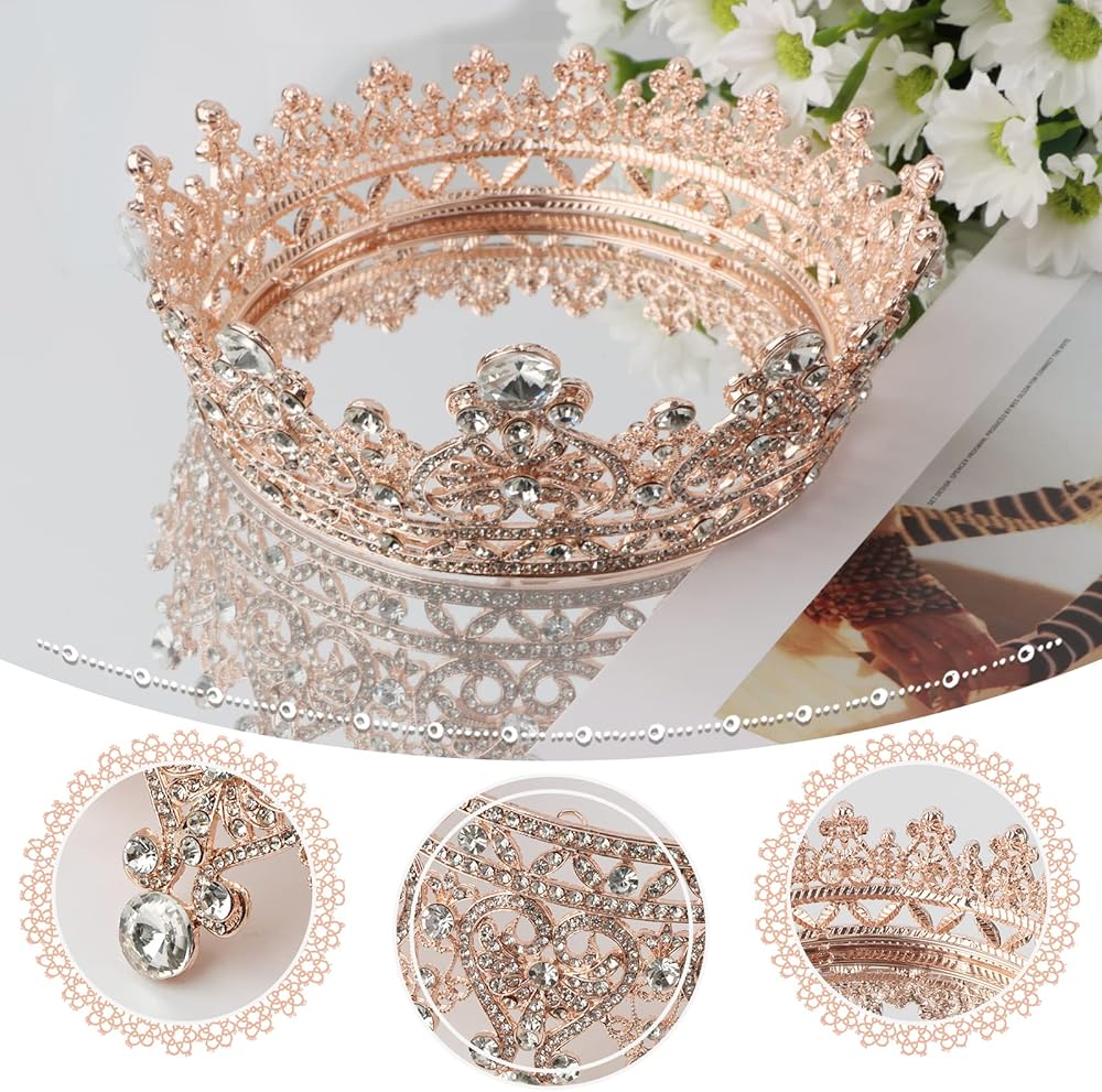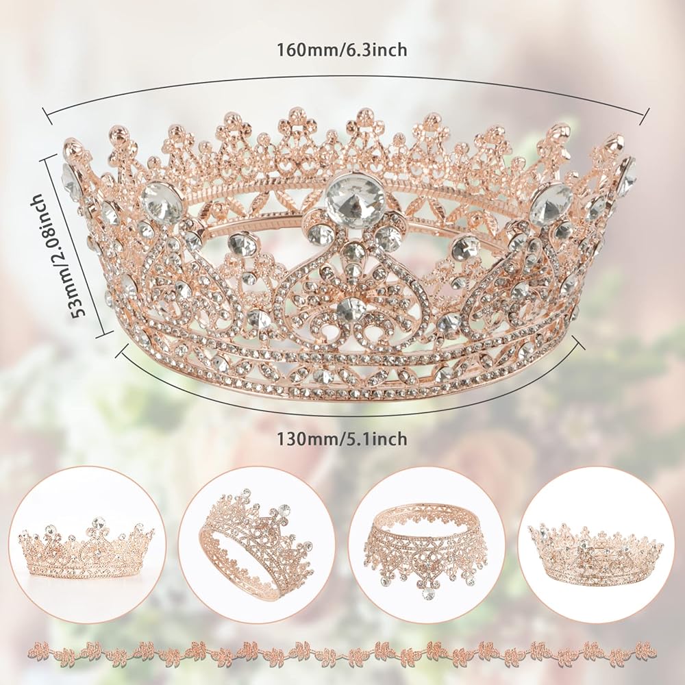 👑【جودة ممتازة】 تاج التاج الكريستالي مصنوع من سبيكة معدنية متينة، ومزين بأحجار الراين في إعدادات الذهب الوردي. تتميز السبائك بمظهر ماسي وملمس صلب من أجل التطبيق العملي والجمالي.