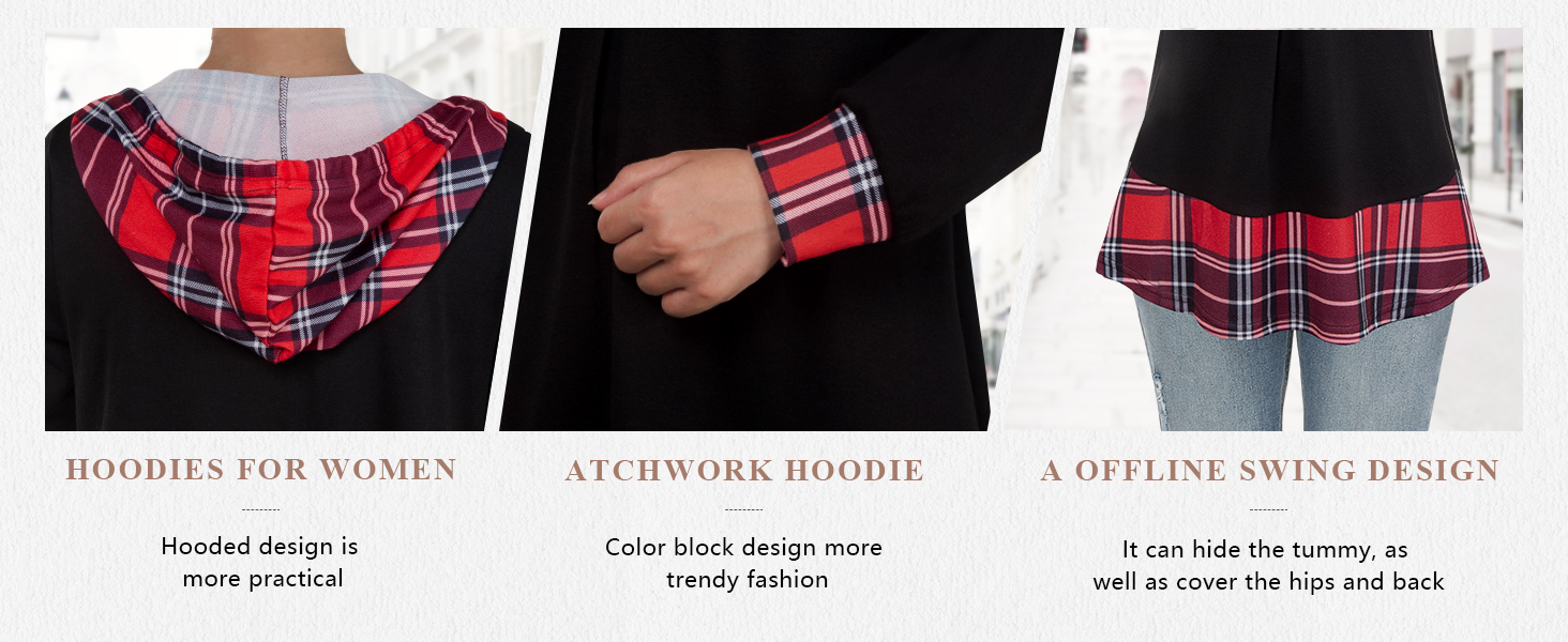 المواد: 35% قطن، 60% بوليستر، 5% إسباندكس. بلوفر نسائي بقلنسوة مصنوع من نسيج ناعم ومطاط عالي الجودة ناعم ومرن ولا يوجد تجاعيد.
